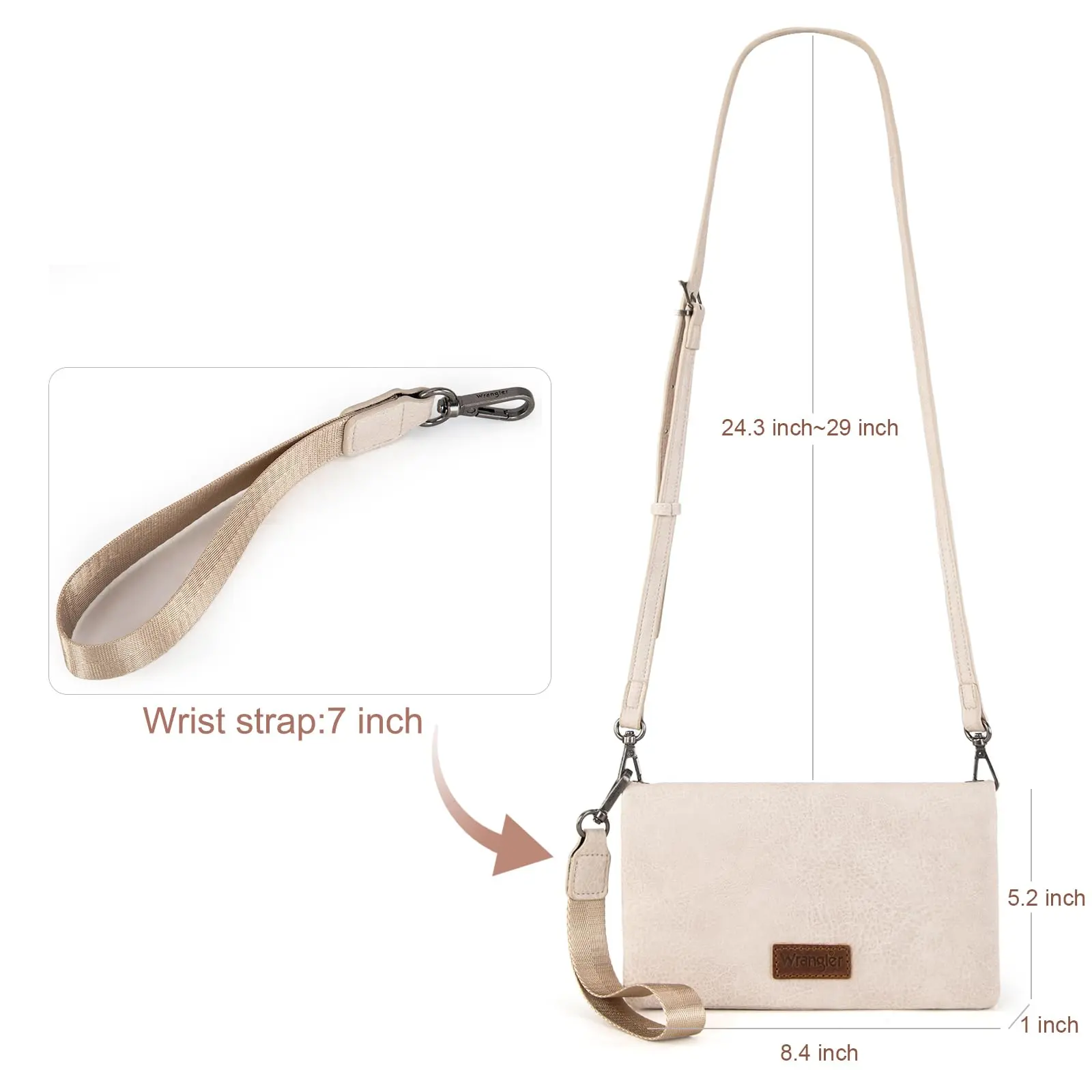 ·Adjustable & Detachable Crossbody Strap: Wear it your way with a detachable, adjustable strap (24.3–29 inches) for crossbody convenience or use the 7-inch wristlet for a more compact option.