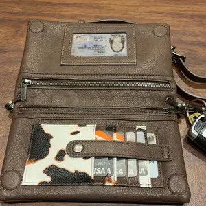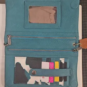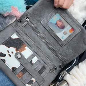 ·The cow print wallet features 1 clear ID window, 2 large zippered pockets, and 6 card slots, providing plenty of room for cards, change, currency