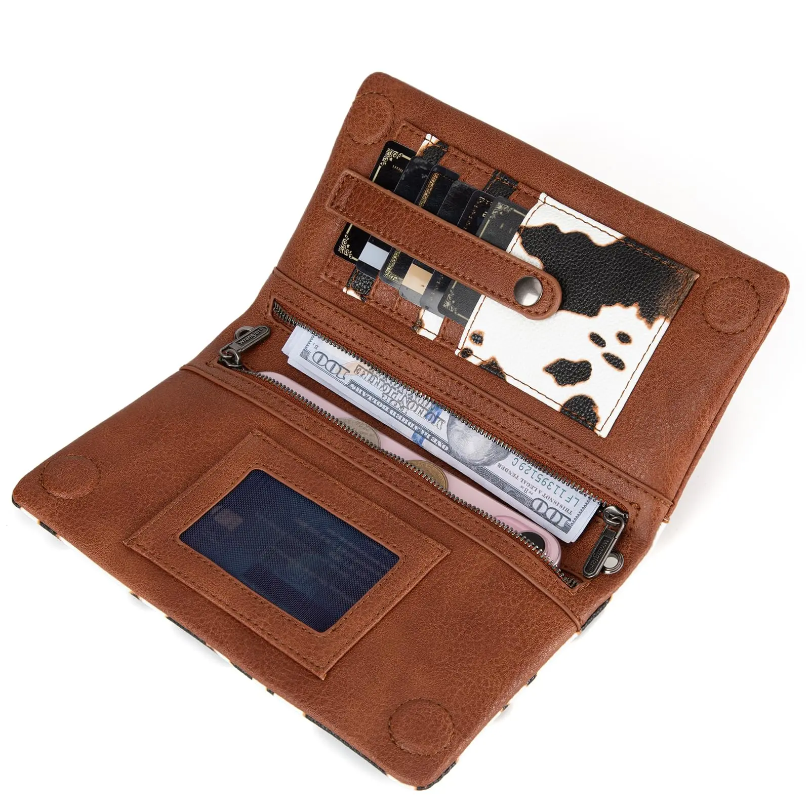·This wrangler cow print wallet for women is the ideal choice for travel, concerts, farm gatherings, country music, rodeo days and other events