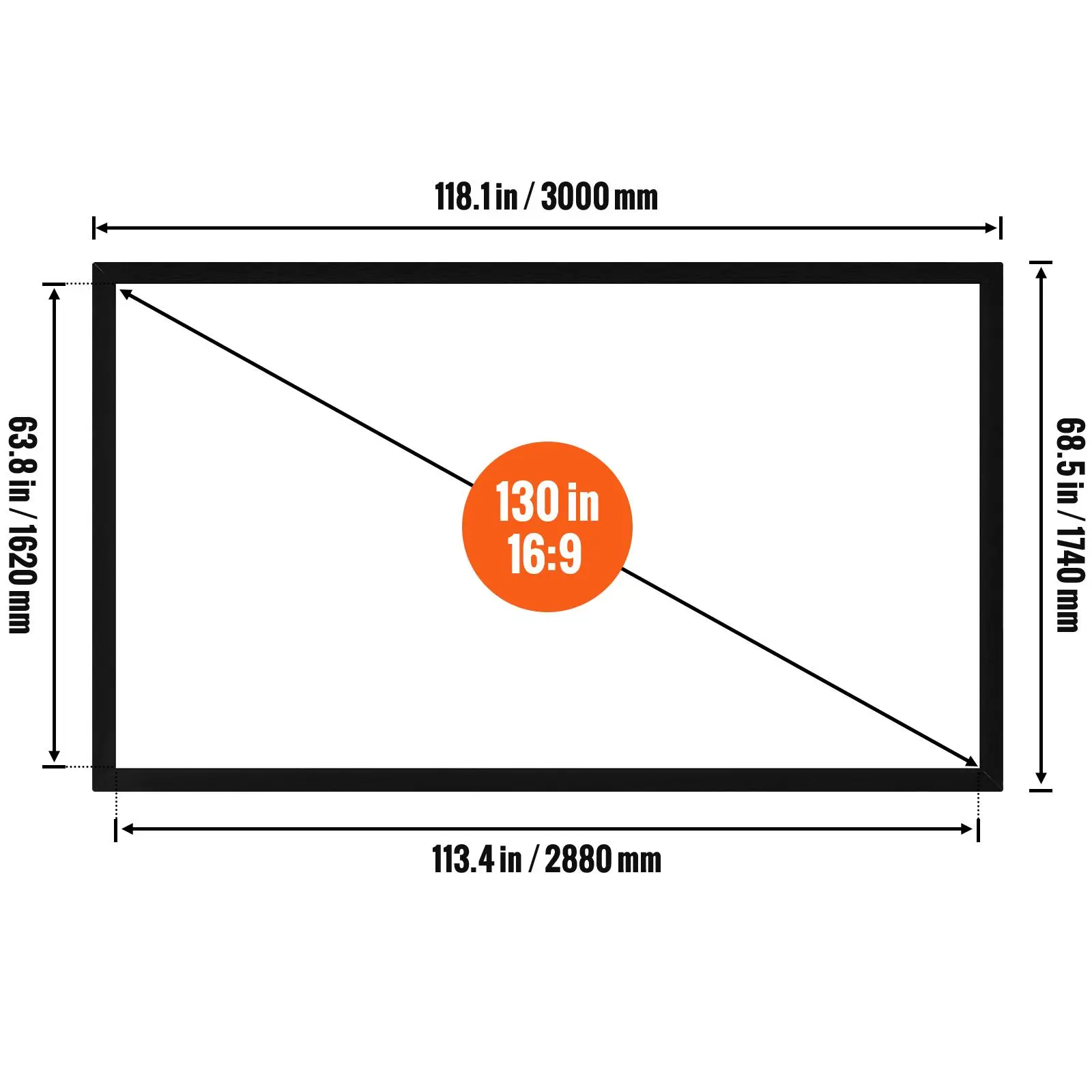 • 【GIANT DISPLAY AREA】- Frame size: 118x68.5", practical 113.3x63.7" sized viewing area.16:9 HD display, actual 1.2 Gains, with a real 160° viewing angle, providing the fresh watching experience.
