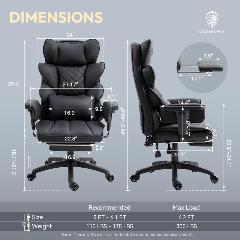 ·Flexible Adjustability: This executive chair offers a versatile reclining range from 90° to 135°, accommodating various activities whether you’re working or relaxing. Additionally, the adjustable padded armrests can be set to your preferred height, ensuring personalized comfort and support
