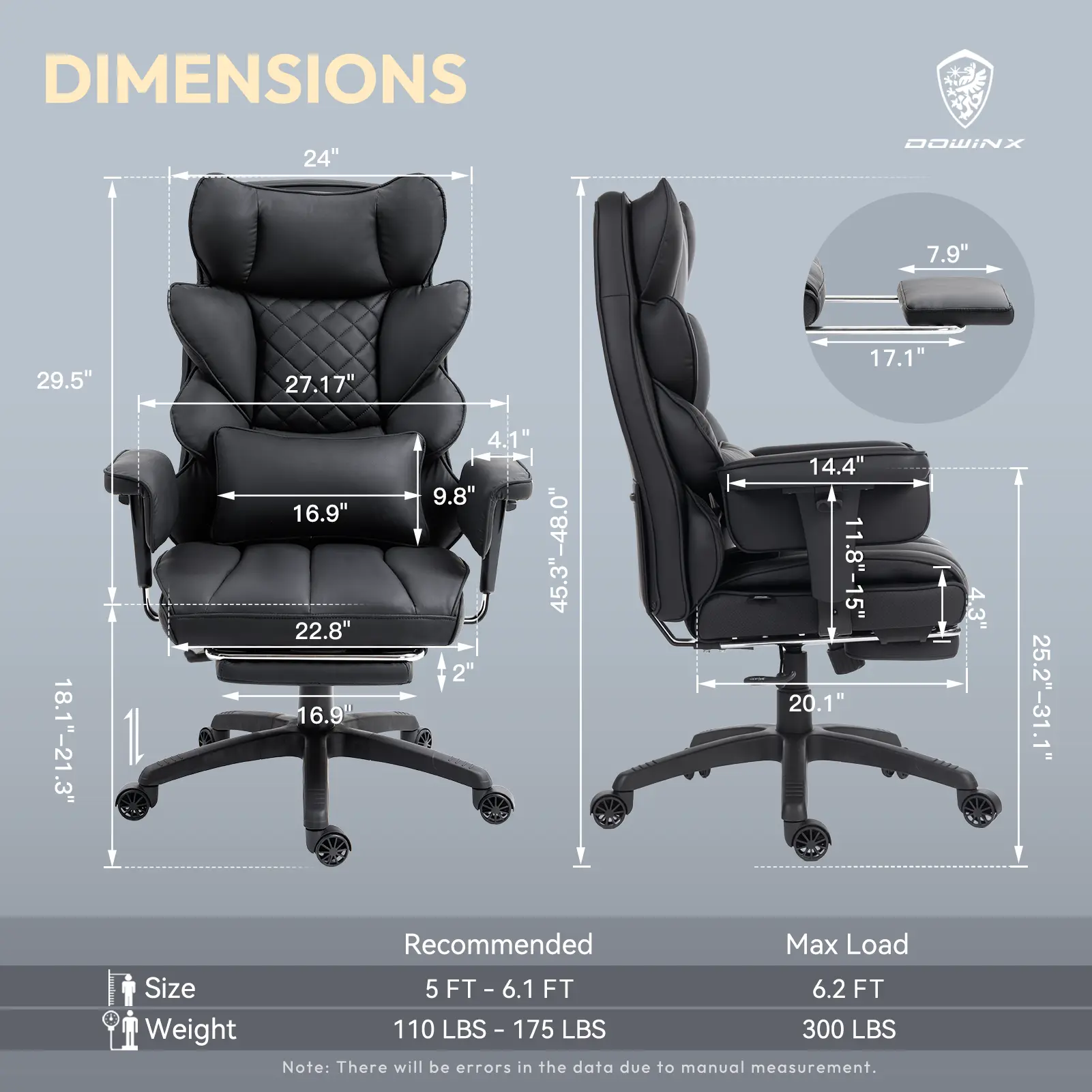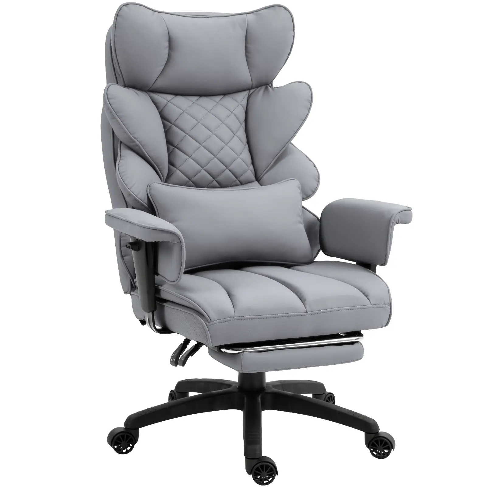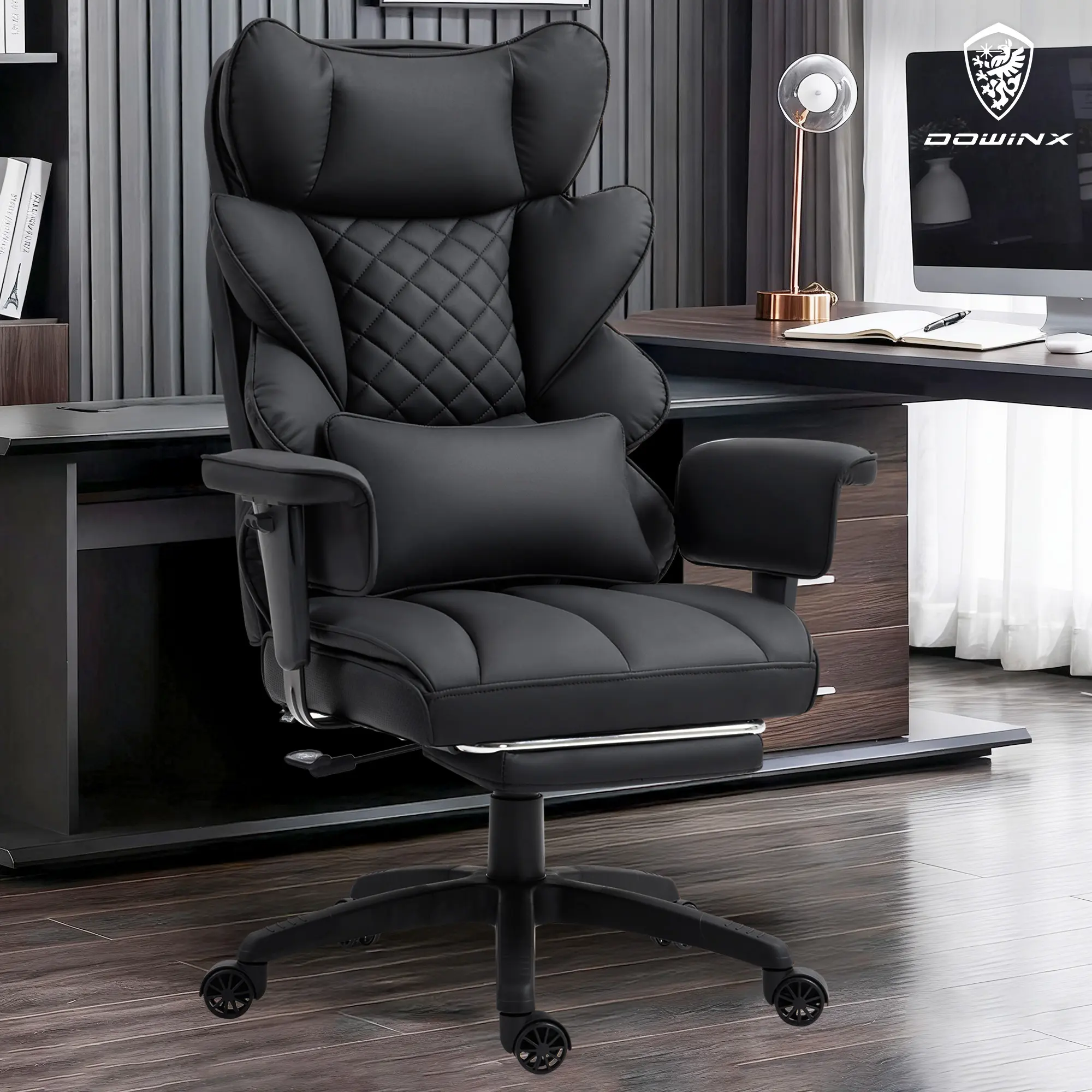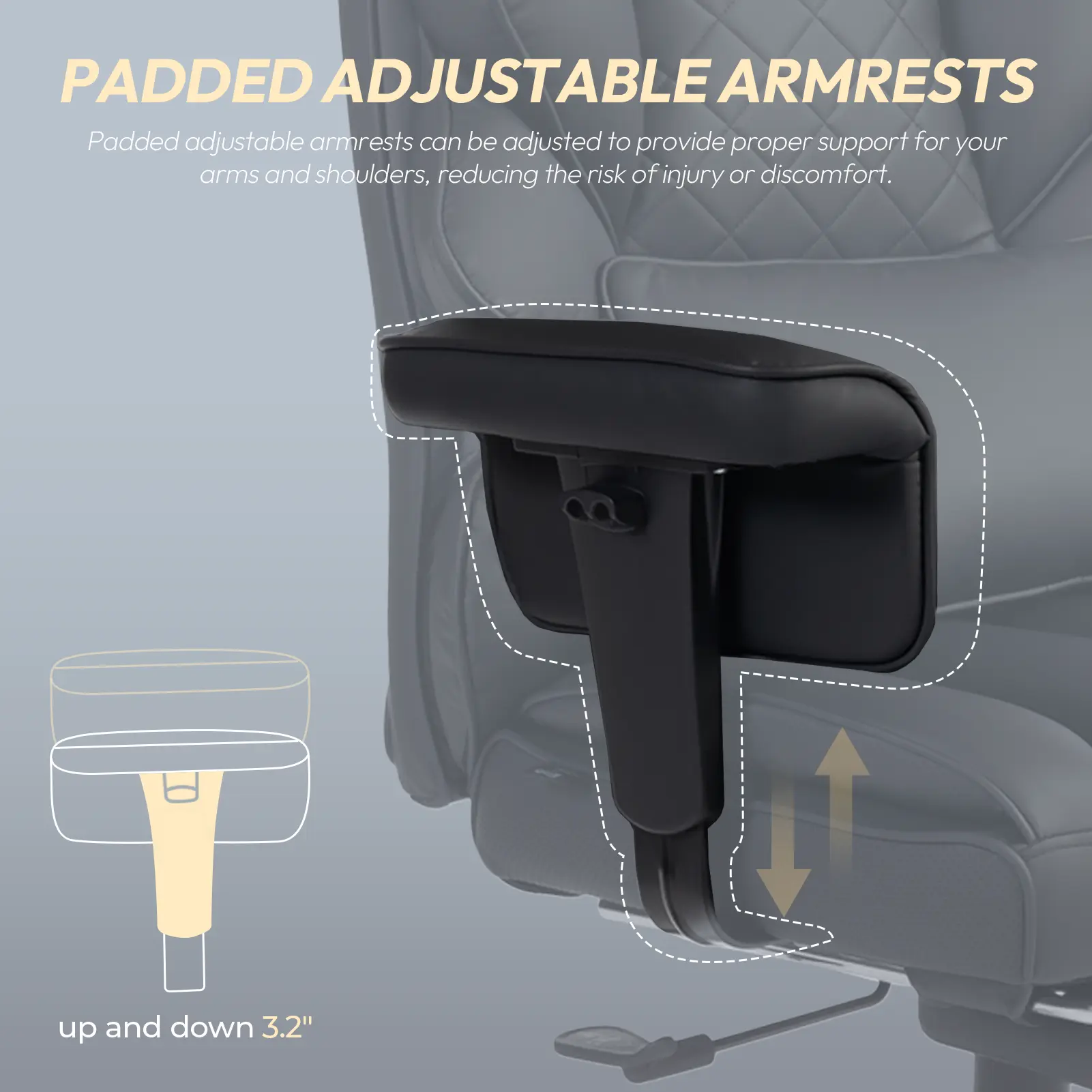 ·Flexible Adjustability: This executive chair offers a versatile reclining range from 90° to 135°, accommodating various activities whether you’re working or relaxing. Additionally, the adjustable padded armrests can be set to your preferred height, ensuring personalized comfort and support