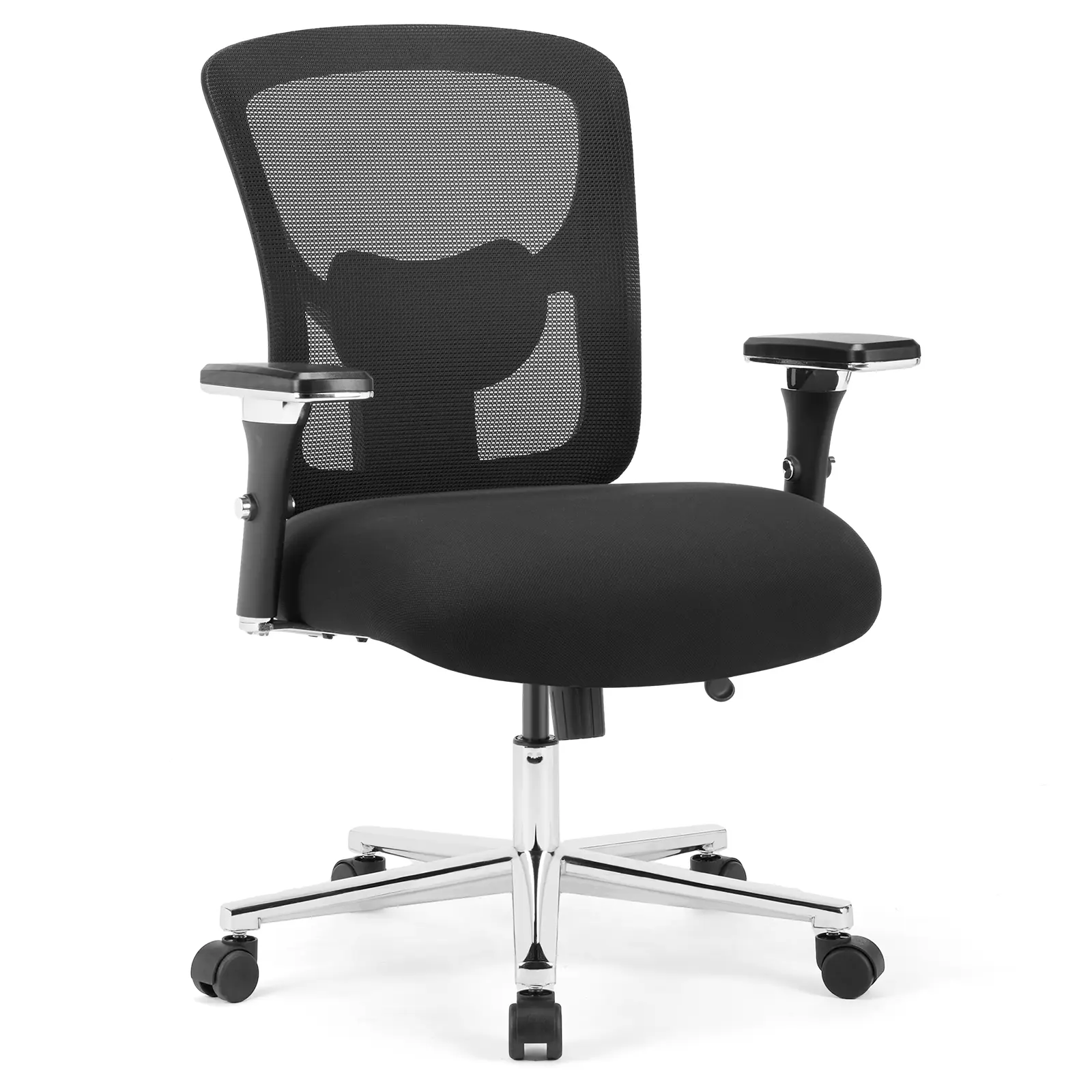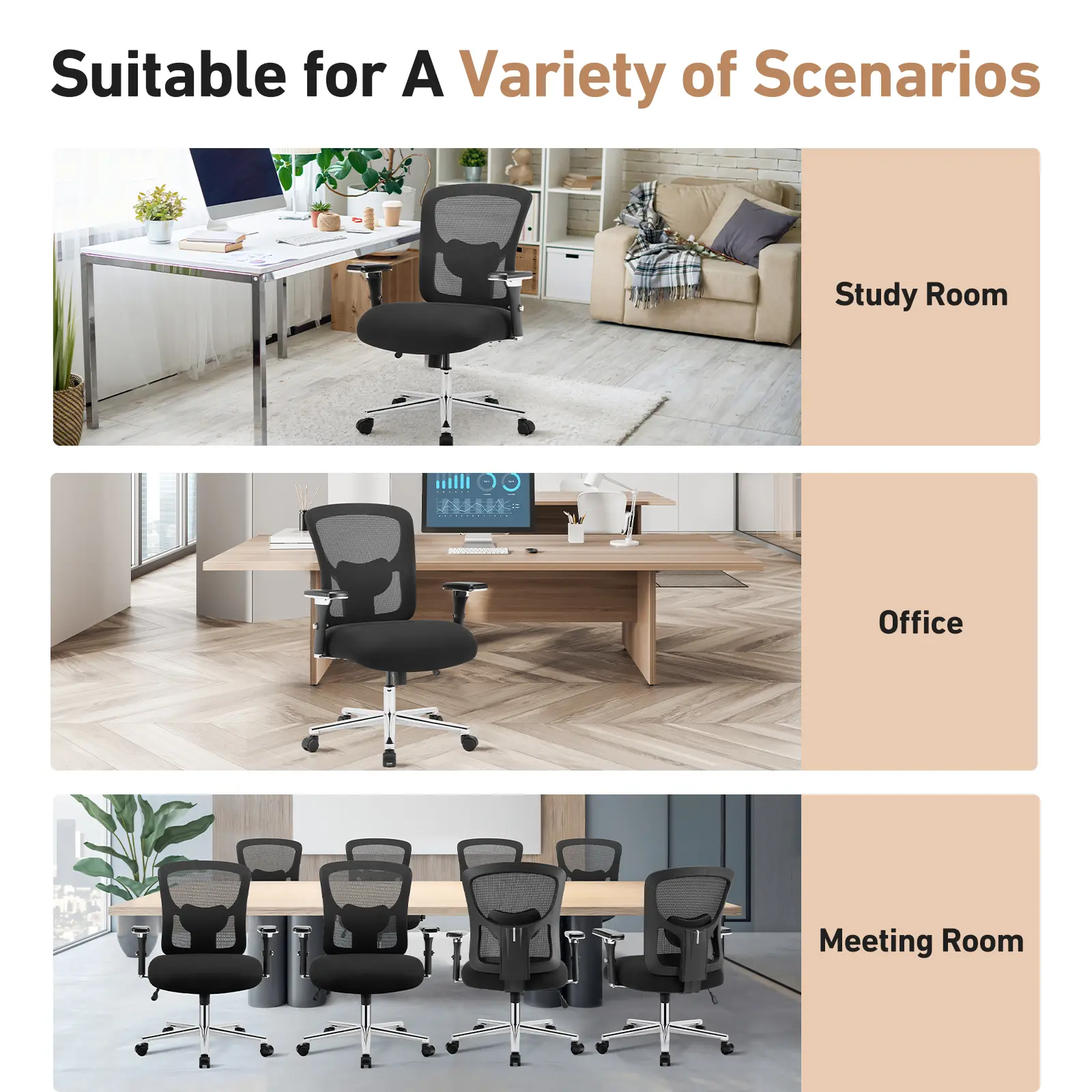·COMFORTABLE AND BREATHABLE MATERIALS - The surface of the big and tall office chair is designed with high-quality mesh fabric, which is breathable; the thickened sponge sits with high resilience and softness like foam, and the cushion adopts a waterfall front seat edge design, which eliminates pressure on the calves and promotes blood circulation;
