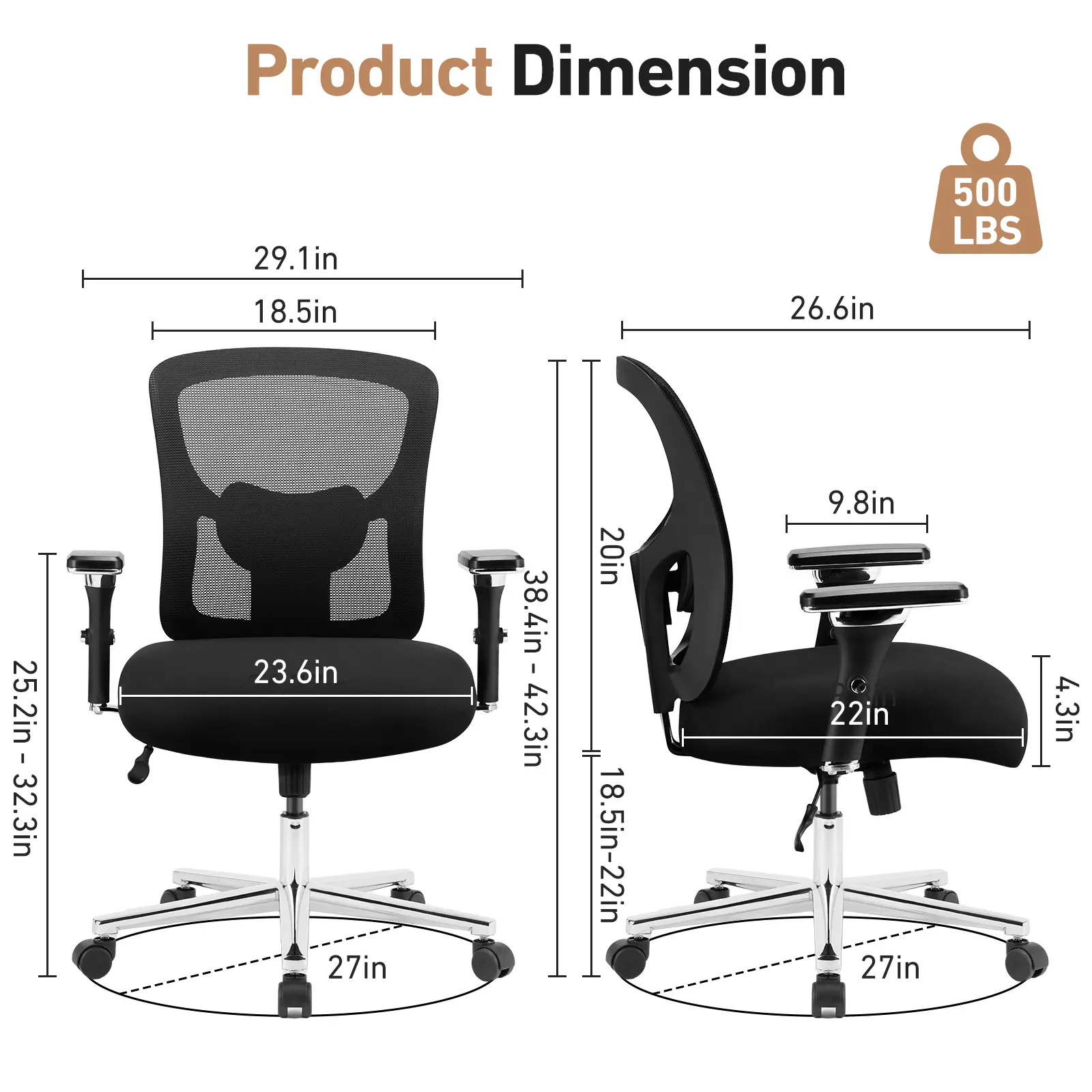 ·EXTRA LARGE AND COMFORTABLE HEAVYWEIGHT CHAIR - This home office chair has a wider and thicker seat cushion, better suited for taller people, and can hold up to 500 pounds. The extra large seat cushion (seat cushion size: 22D" X 26.77W", 4.33" thick) will bring you a more comfortable experience;