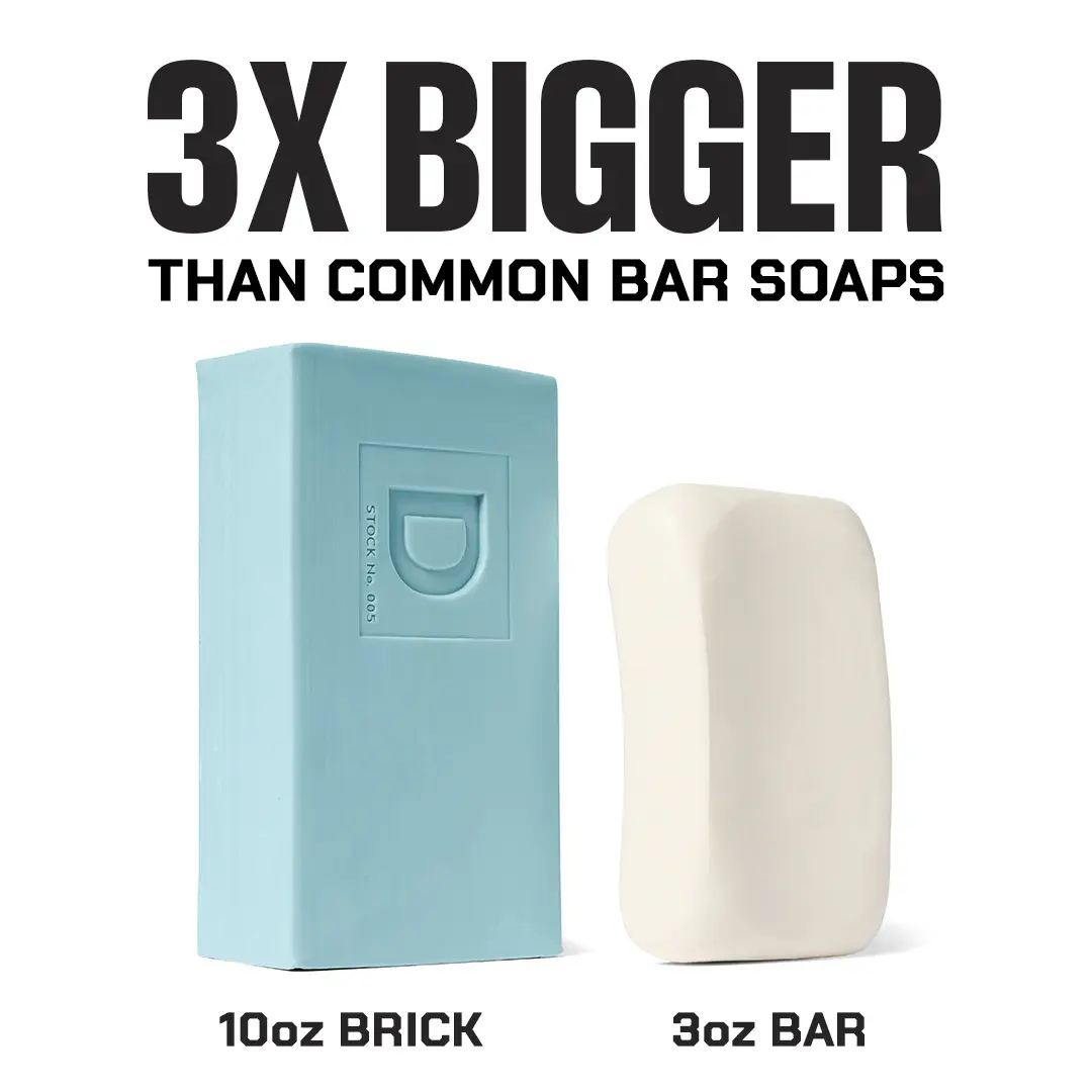 Our Big Brick of Soap weighs in at a whopping 10 ounces, roughly 2-3 times the size of other dainty, bath soap bars. We do not include any synthetic dyes or animal derived ingredients in our fragrances. America's best dudes deserve only the best ingredients. Paraben-free, Sulfate-free, Phthalate-free.