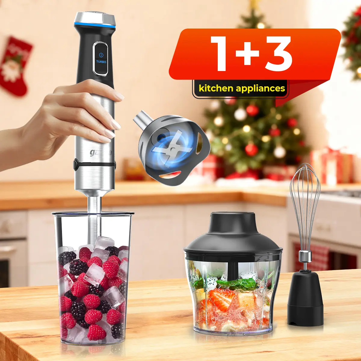 Je n ai pas reçu toutes les pièces montrant.On m a envoyé seulement « Hand blender » Vous avez dit 1+7 ça ne va pas.