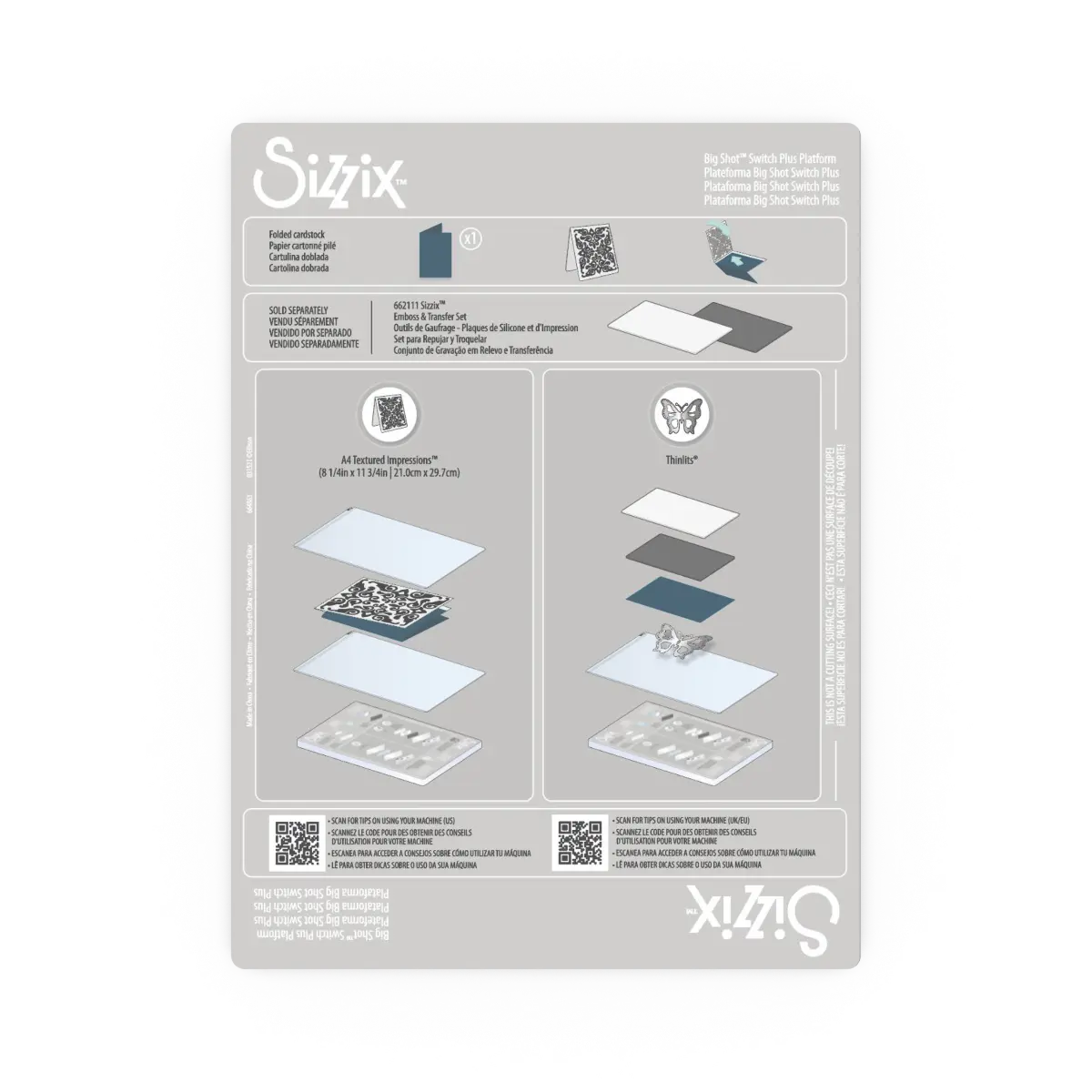 Constructed of polypropylene plastic, the Big Shot Switch Plus Platform easily makes Textured Impressions Embossing Folders compatible with the Big Shot Switch Plus machine.