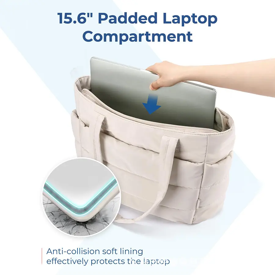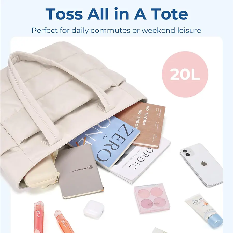 Multiple Pockets: This women's tote bag features multiple individual pockets. A multi-layered main compartment easily accommodates a laptop, A4 folders, clothing, and more. Spacious side and front pockets provide quick access to essentials.