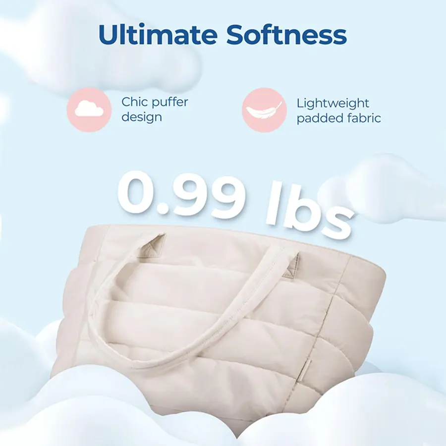 Soft and Supportive: The BIGWIG tote bag is made of ultra-soft material and features padded shoulder straps for comfort even when fully loaded. Its compact design makes it easy to carry.