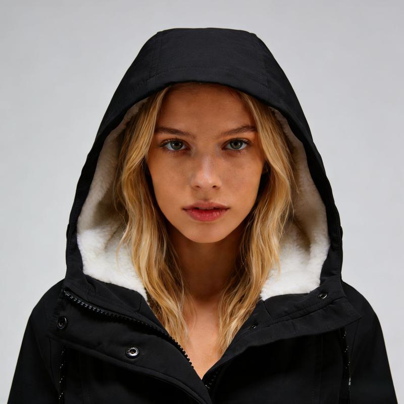 True to size, form fitting inside is fluffy soft. Outer shell is waterproof. My wife loves it.