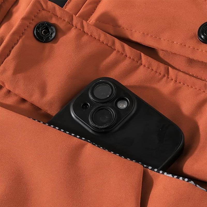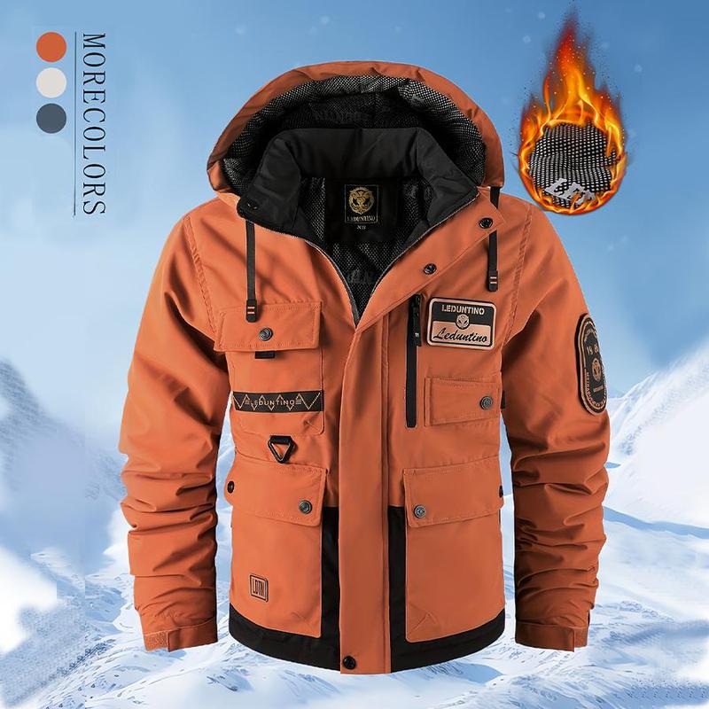BIGWIG men's autumn and winter hooded parka, thickened warm work jacket, multi-pocket work top, windproof and waterproof cotton clothing, sports hooded jacket, cotton warm soft shell clothing, outdoor camping outdoor jacket
