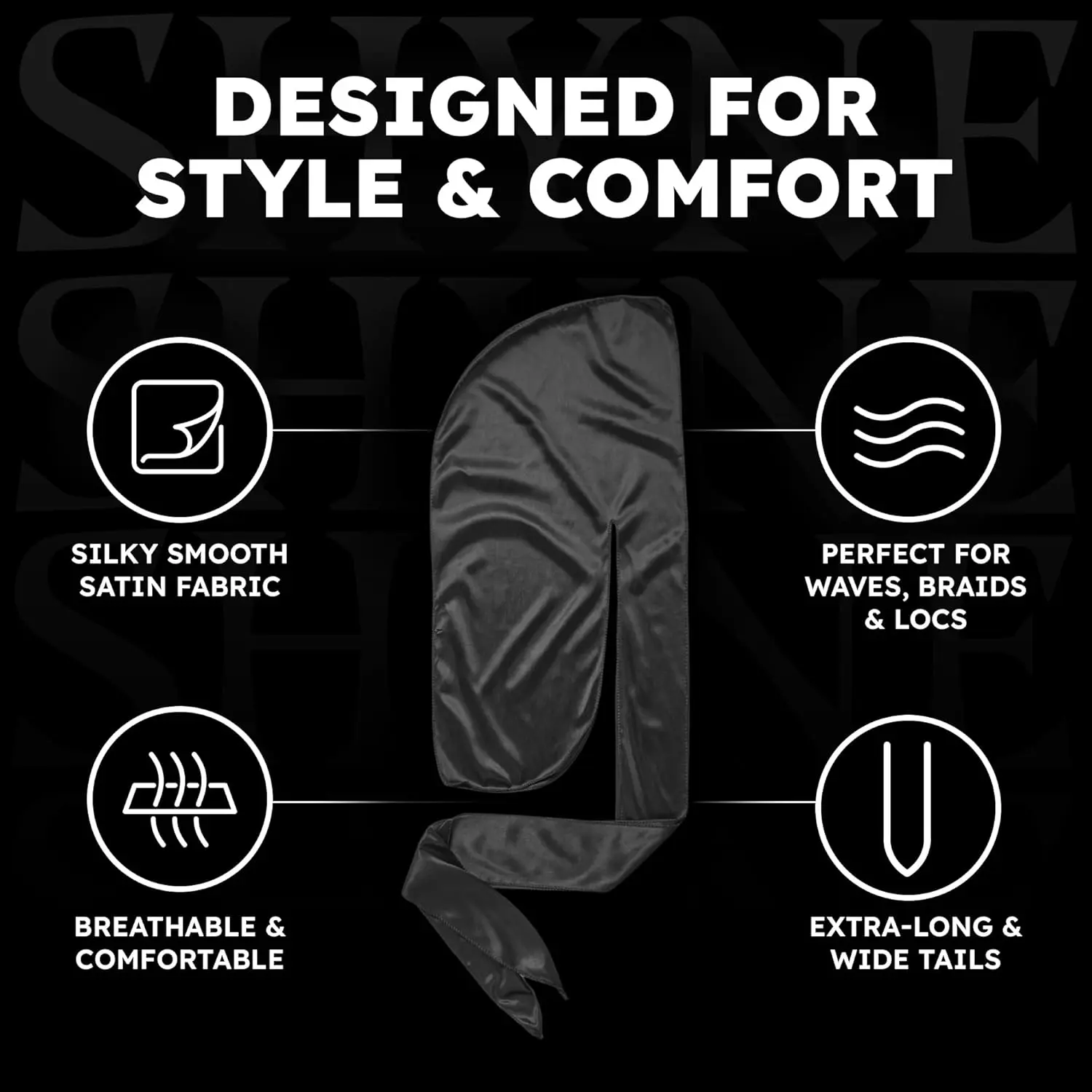 ·A HAIRCARE STAPLE: This silky durag is a must-have hair accessory for styling and maintaining waves, cornrows & dreads. Featuring a headband that is extra-long & wide tails which provides enhanced protective compression & a slip-free secure fit.