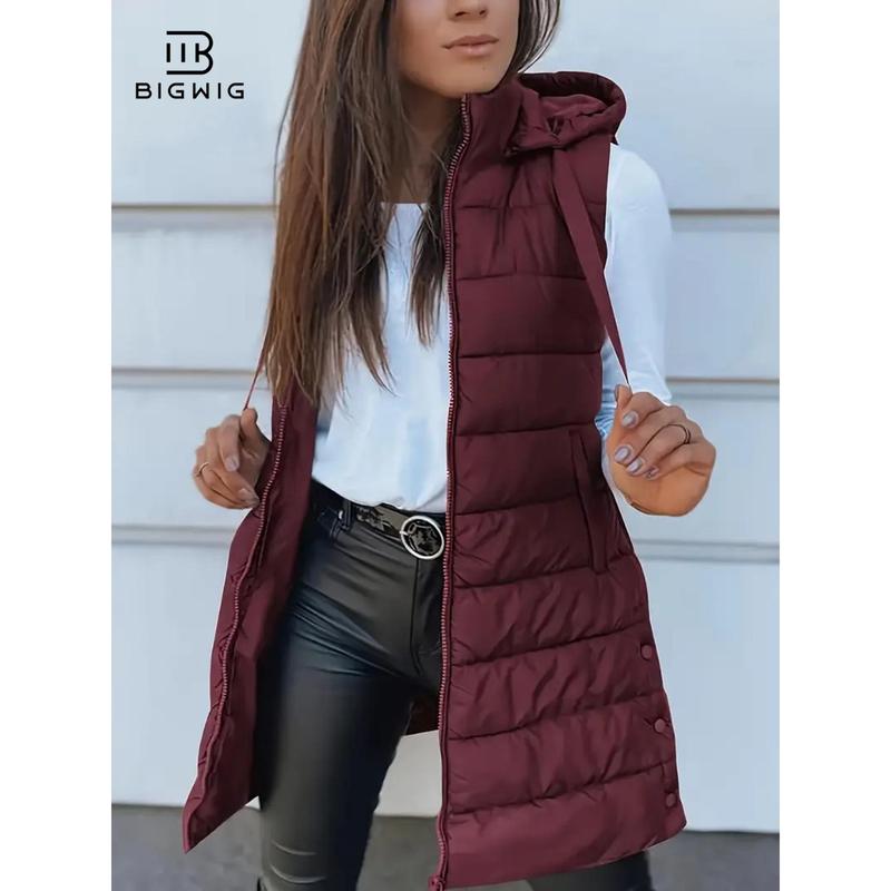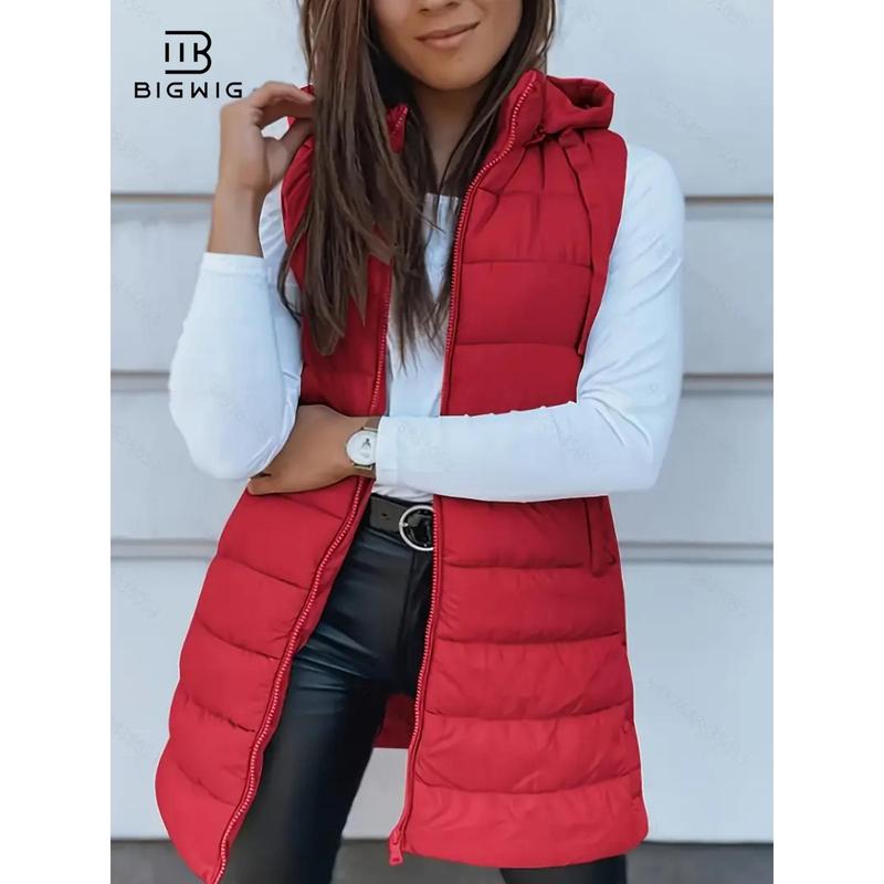 BIGWIG Solid Color Hooded Zipper Vest Jacket Women's Clothing