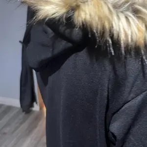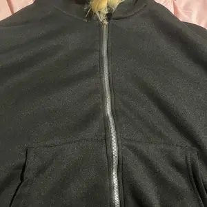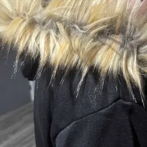 Features : Color: deep black Closure: central zip Hood: integrated Fur: synthetic, imitation fur, natural color Pockets: two front pockets Sleeves: long with ribbed cuffs Fit: slightly oversized / straight Material: cotton / polyester / fleece