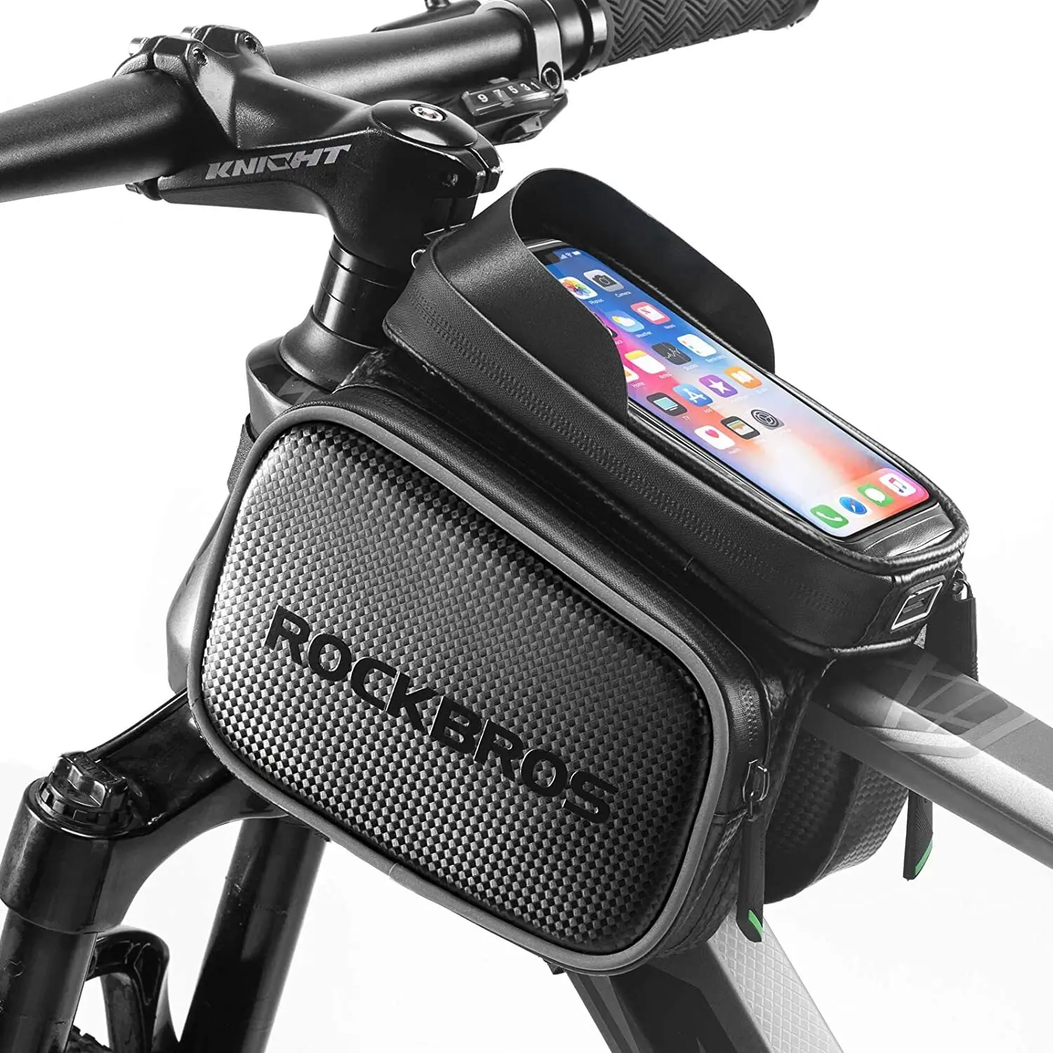 Waterproof Design: Made from carbon composite with sealed zippers, this top tube bag keeps your belongings dry even in rainy conditions. Perfect for all-weather riding.