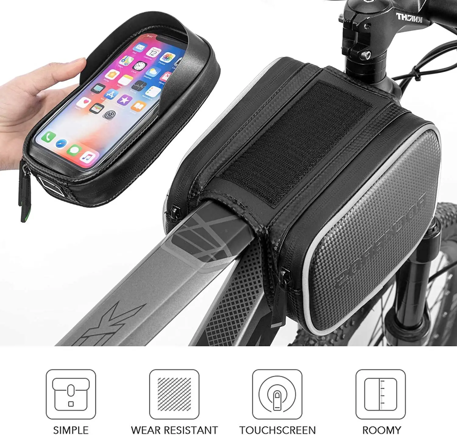 Secure & Stable Mounting: Adjustable straps ensure the bag stays firmly in place on your bike's top tube, even on bumpy roads. Quick and tool-free installation.