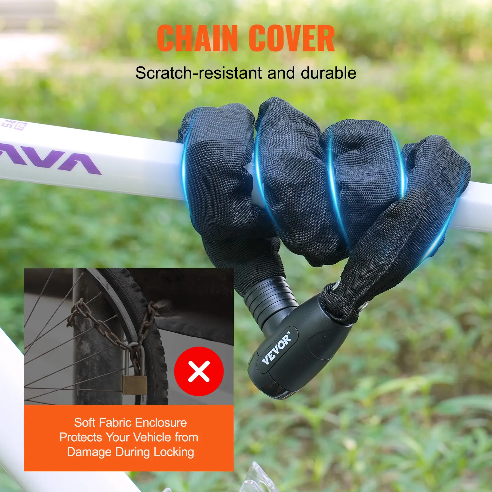 • Chain Protection Sleeve: Wrapped in a soft black cover, this motorcycle chain lock remains smooth and shiny while protecting your bike from scratches.