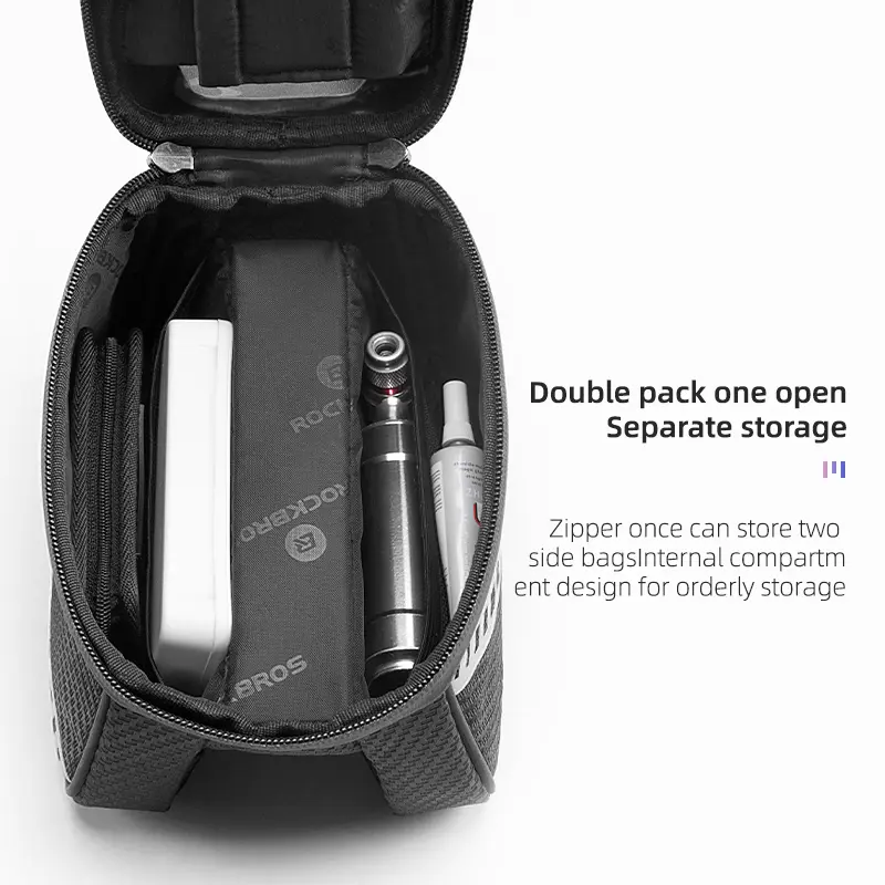 ·CLASSIFIED STORAGE DESIGN:This front frame bag use classified storage which separated by grooves in the middle, more convenient to use.Besides, 1L capacity is enough to holds a lot of stuff such as smart phone, wallet, keys, phone, repair kits,mini pump, card etc