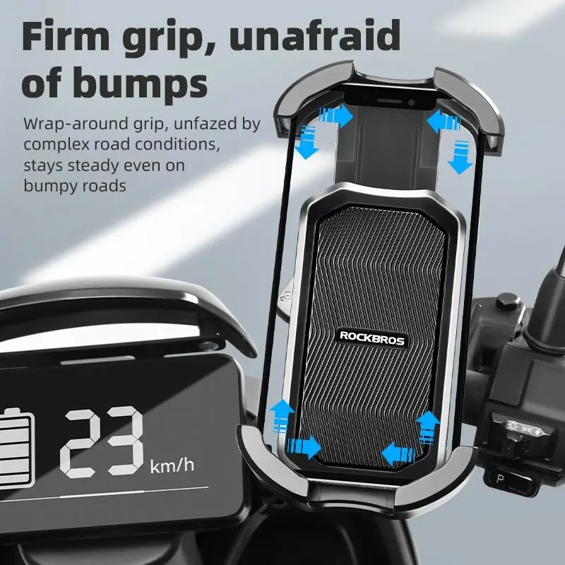 ·[SHOCK PROTECTION]: The four arms and front of the phone mount for bike are equipped with 4mm thick EVA pads, which effectively prevent shock and vibration, providing all-round protection for the phone. Even on bumpy roads, you can use it with confidence.