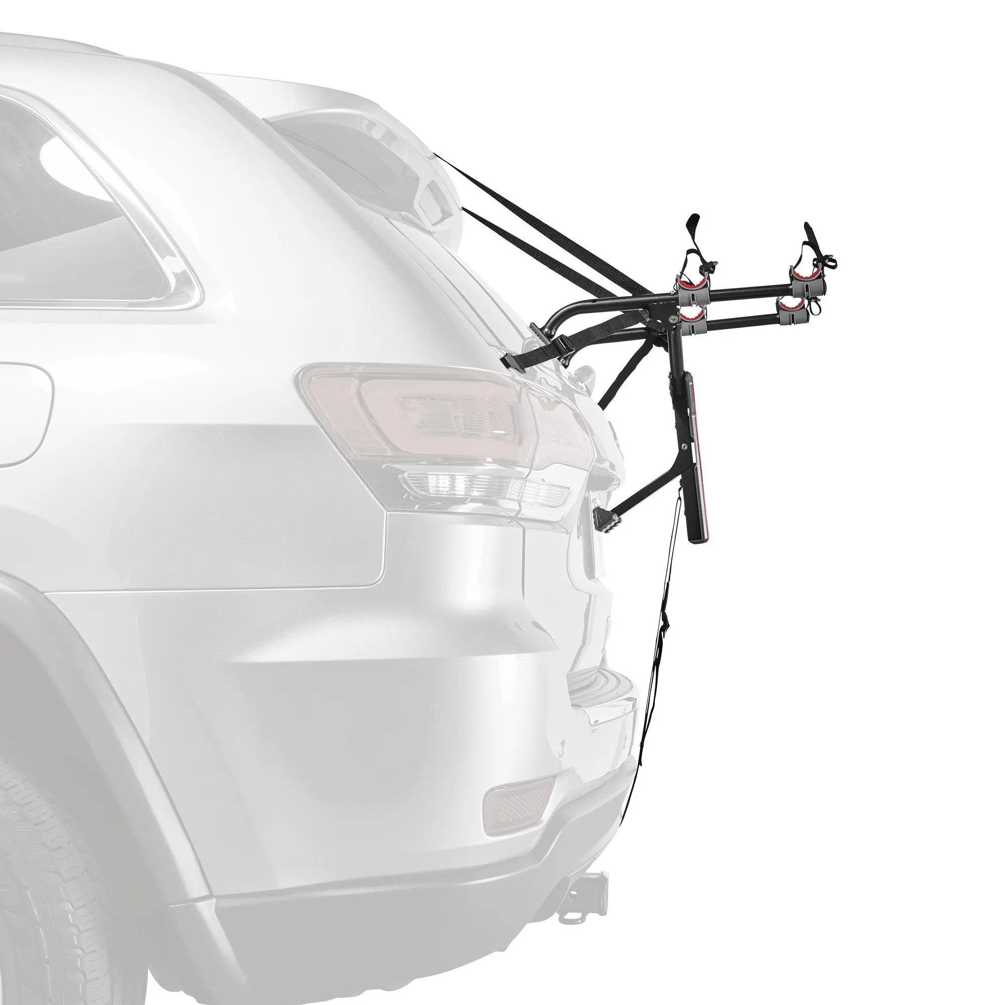 This little clamp-on rack is perfect for short trips between home and bike path. I like that is easy to attach and can be left on when not in use since it blocks neither the license plate or the tailgate on my SUV. I covered the attaching hooks with a short ring of rubber (cut from an old bike tube) and stuck a few strips of plastic protective film under the straps where they touched the car. Well done, Allen! Your products are well designed and crafted.