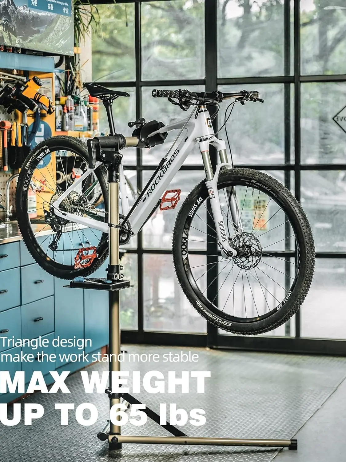 ·Stable & Heavy Duty: The triangle structure ensures maximum stability, supporting bikes up to 65 lbs, perfect for heavy-duty maintenance.