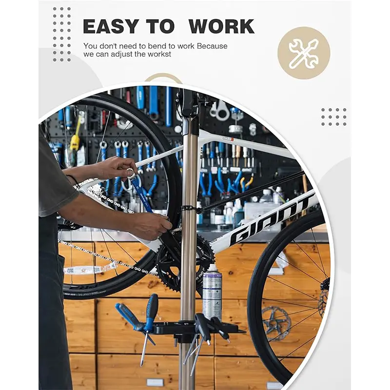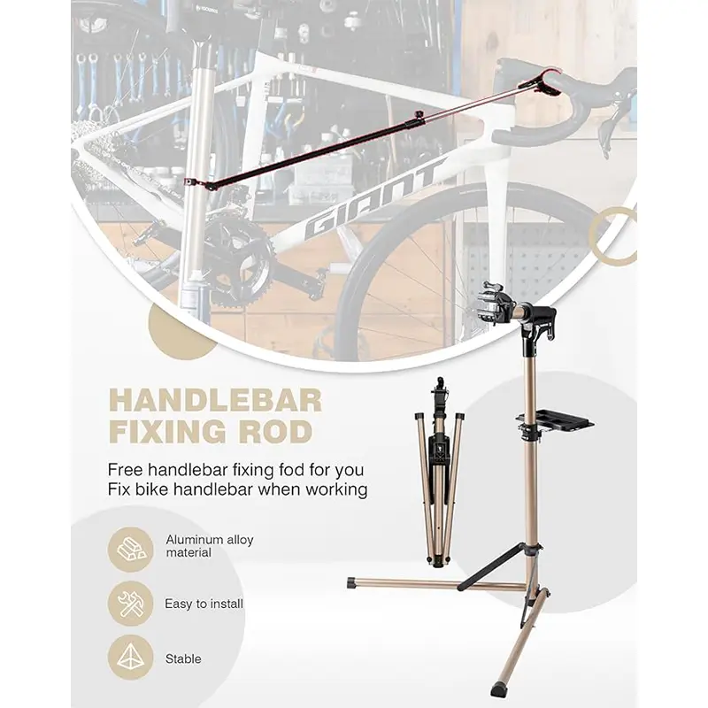 ·Precision Craftsmanship: Every detail showcases meticulous workmanship, from the gentle grip of the rubber clamp protecting your bike to the stabilizing rod preventing wobbling, ensuring a smooth and safe repair process.