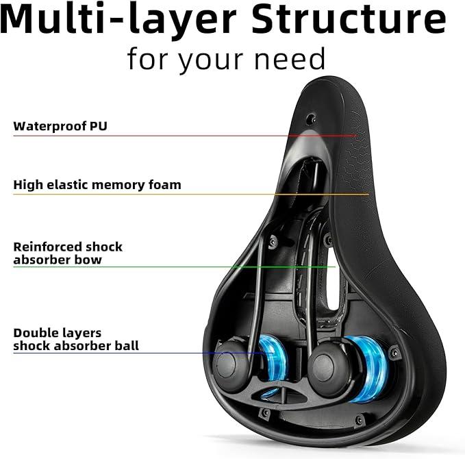 ·High Quality Memory Foam: Thickened form layer keeps from saddle bone and butt pain, perfect for your riding and ensures a comfortable experience.