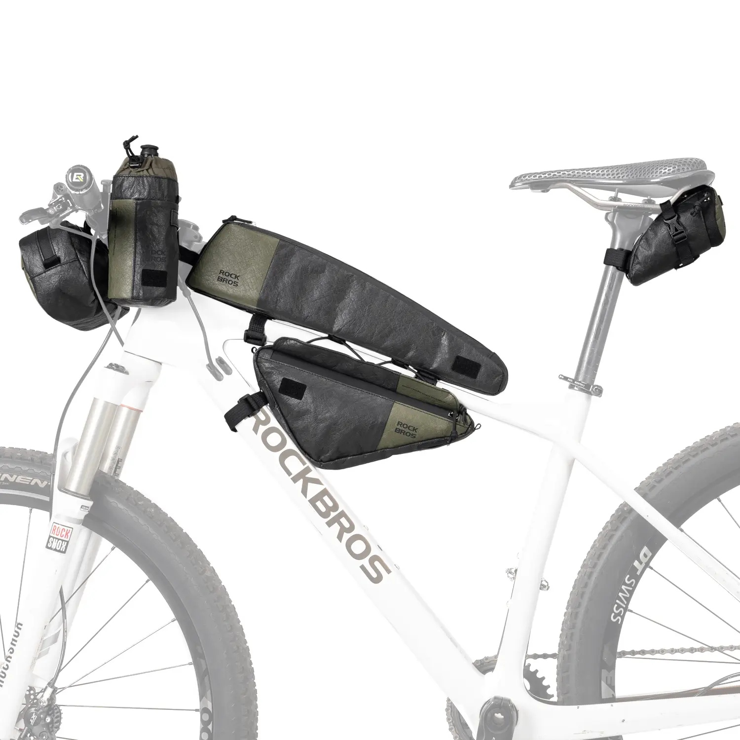 ·Includes front bag, crossbody bag, rear saddle bag, top tube bag, and triangle bag. 📦