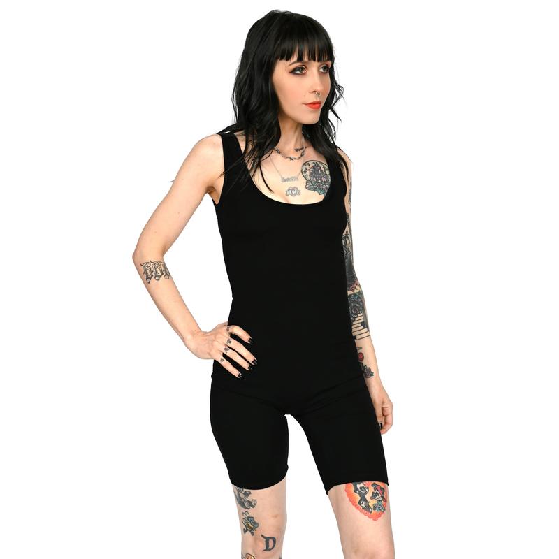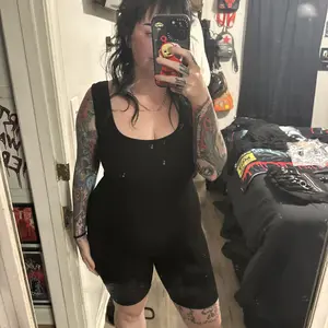 Most comfortable biker shorts romper! Keeps you snatched all day. Wore it with an oversized sweatshirt and it’s perfect 🖤