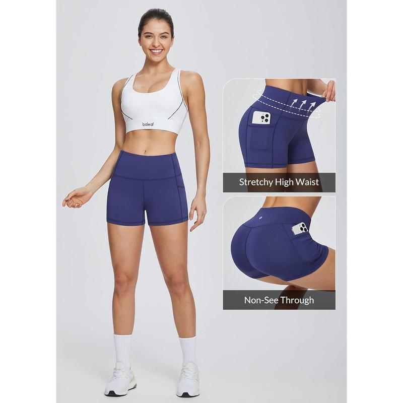 baleaf Women's 3" Biker Shorts High Waist Yoga Workout Gym Running Volleyball Spandex Shorts with Pockets