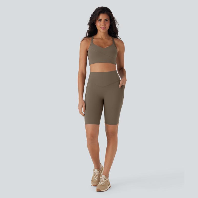 Halara UltraSculpt High Waisted Tummy Control Pocket Shaping Training Biker Shorts 9''