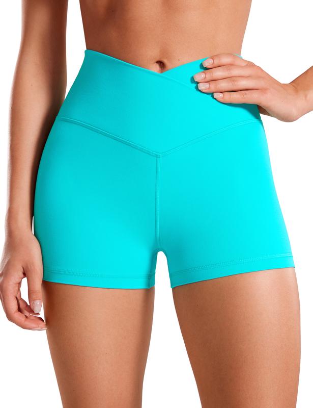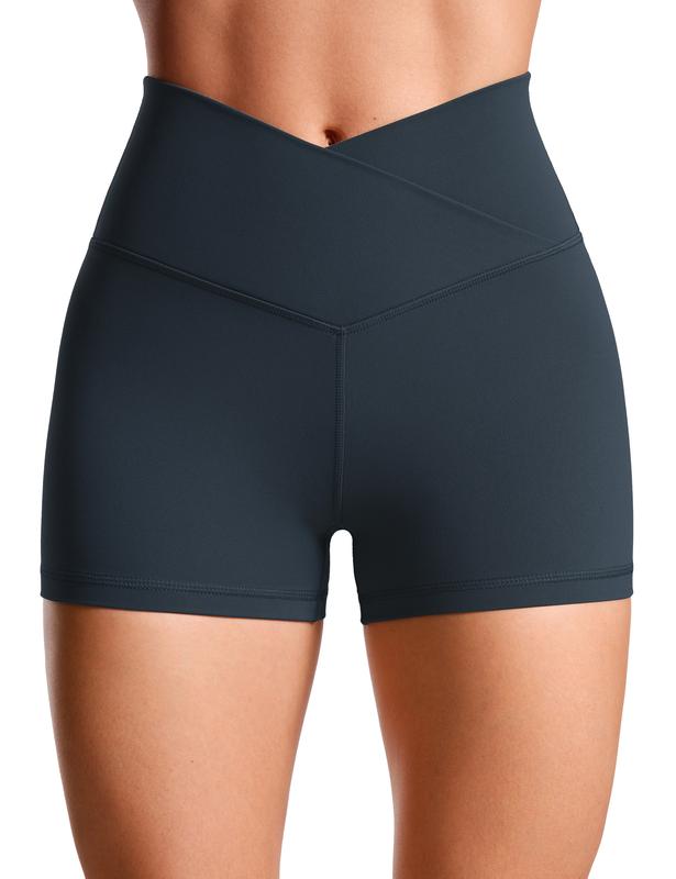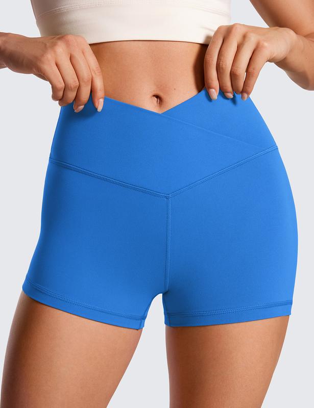 CRZ YOGA Womens Butterluxe Crossover Biker Shorts 3'' - Criss Cross High Waisted Workout Yoga Shorts Buttery Soft