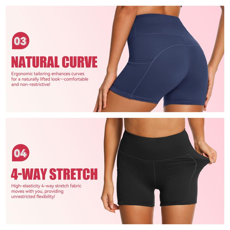 2 Side Pockets, Hands-Free: These high-waisted biker shorts for women feature a 5-inch inseam and two seamless side pockets for easy access. Their pockets can hold your phone, keys, credit cards, or small essentials through any activity without worry.