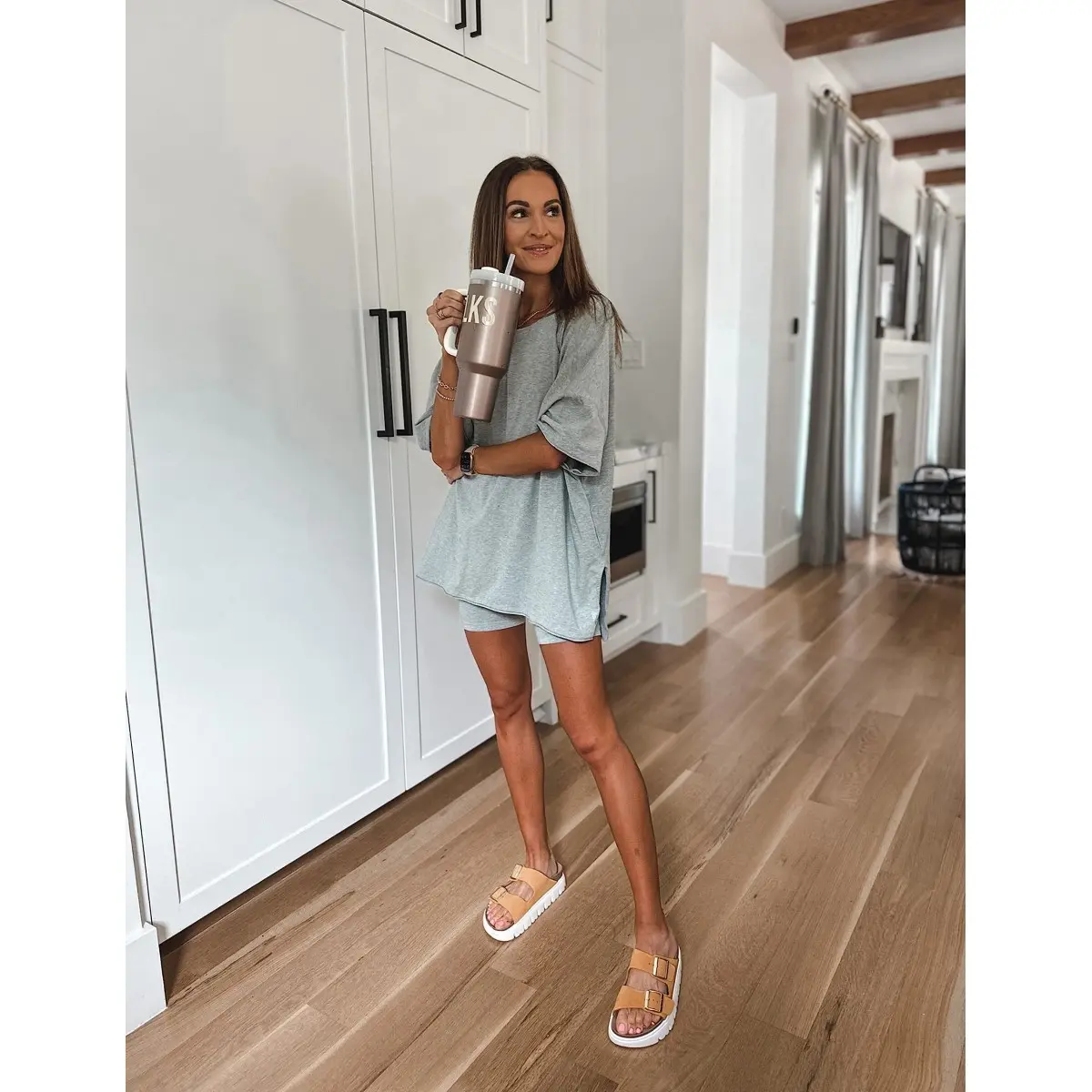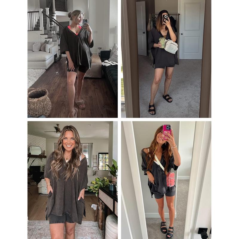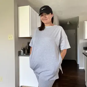 Super comfy and lightweight! Has a lot of stretch which is perfect and it has pockets guys! I chose not to size down and to just get my normal size, which I’m glad I did! I like the oversized fit and I have a midsection so it doesn’t accentuate that. The shorts fit perfectly as well! 10/10!