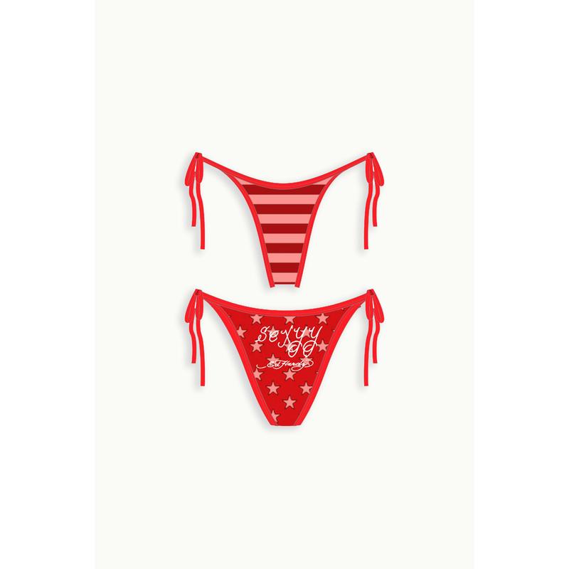Triangle bikini bottom with stars & stripes pattern printed throughout.