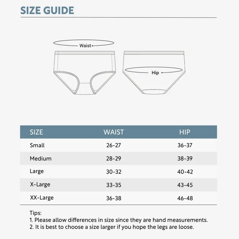 ·【Size Guide】We are well aware of the importance of fit, so we provide a detailed size guide to meet the needs of different body types to ensure you can choose the size that briefs suit you. If you have any questions, you are always welcome to consult.
