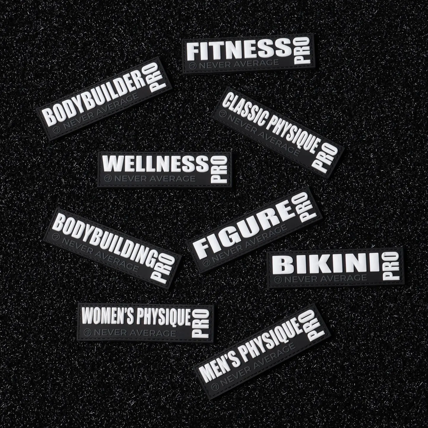 Bikini Pro rubber patch white letters and black background
