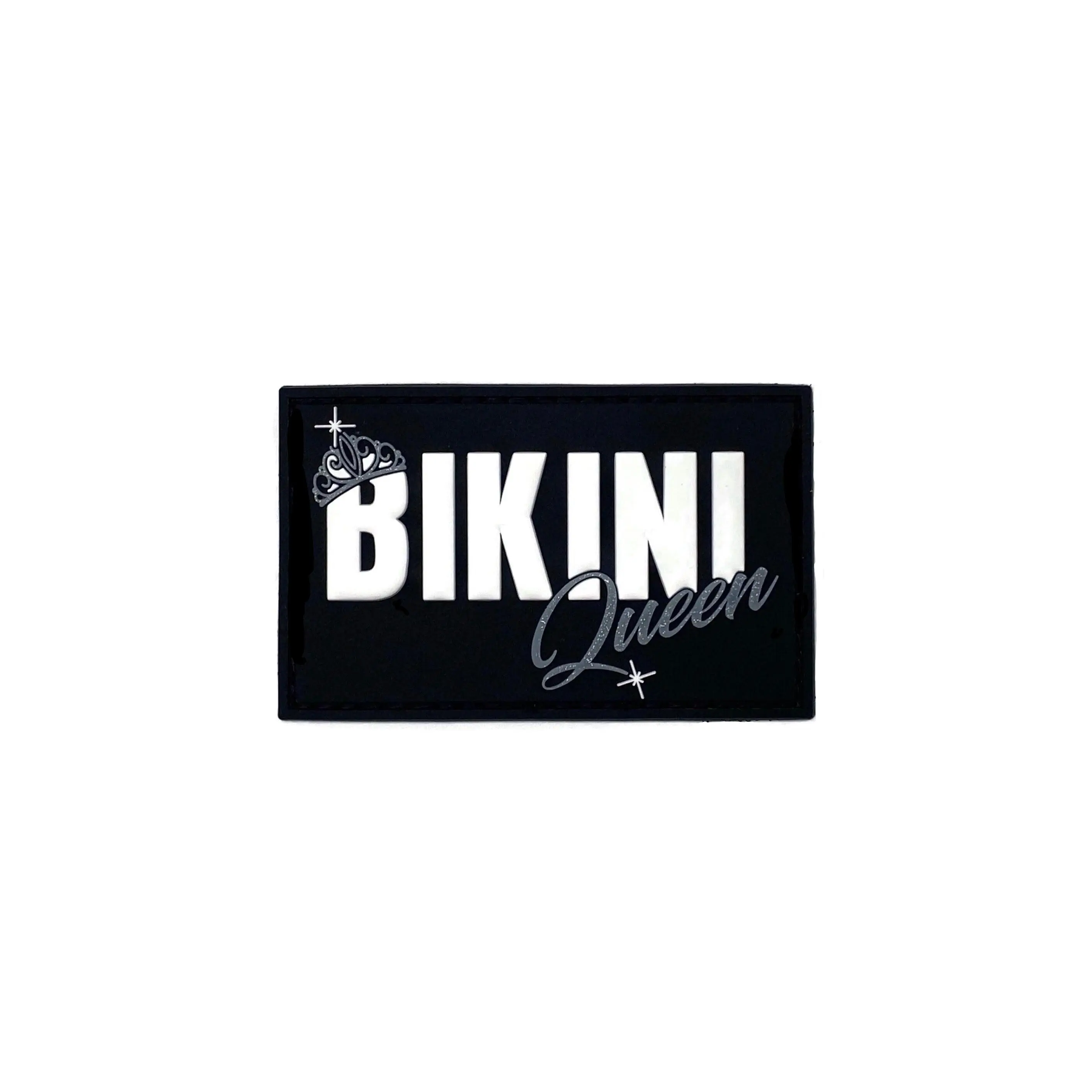 Bikini Queen rubber 3D patch in black and white with sparkles included.
