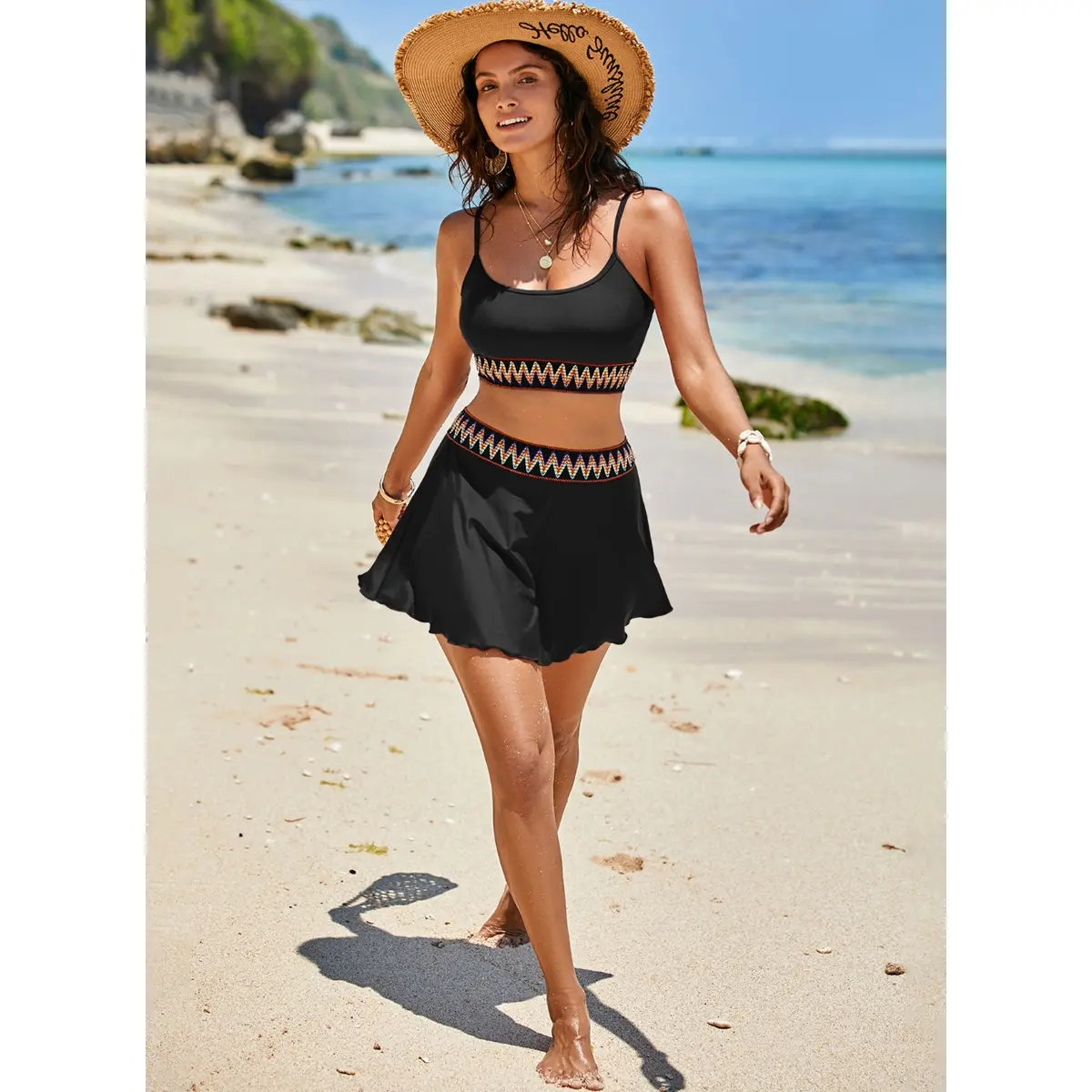This bathing suit is the perfect two piece. It isn’t revealing and covers all of the right places. I like it is keeps you modest while wearing it and I feel comfortable too.