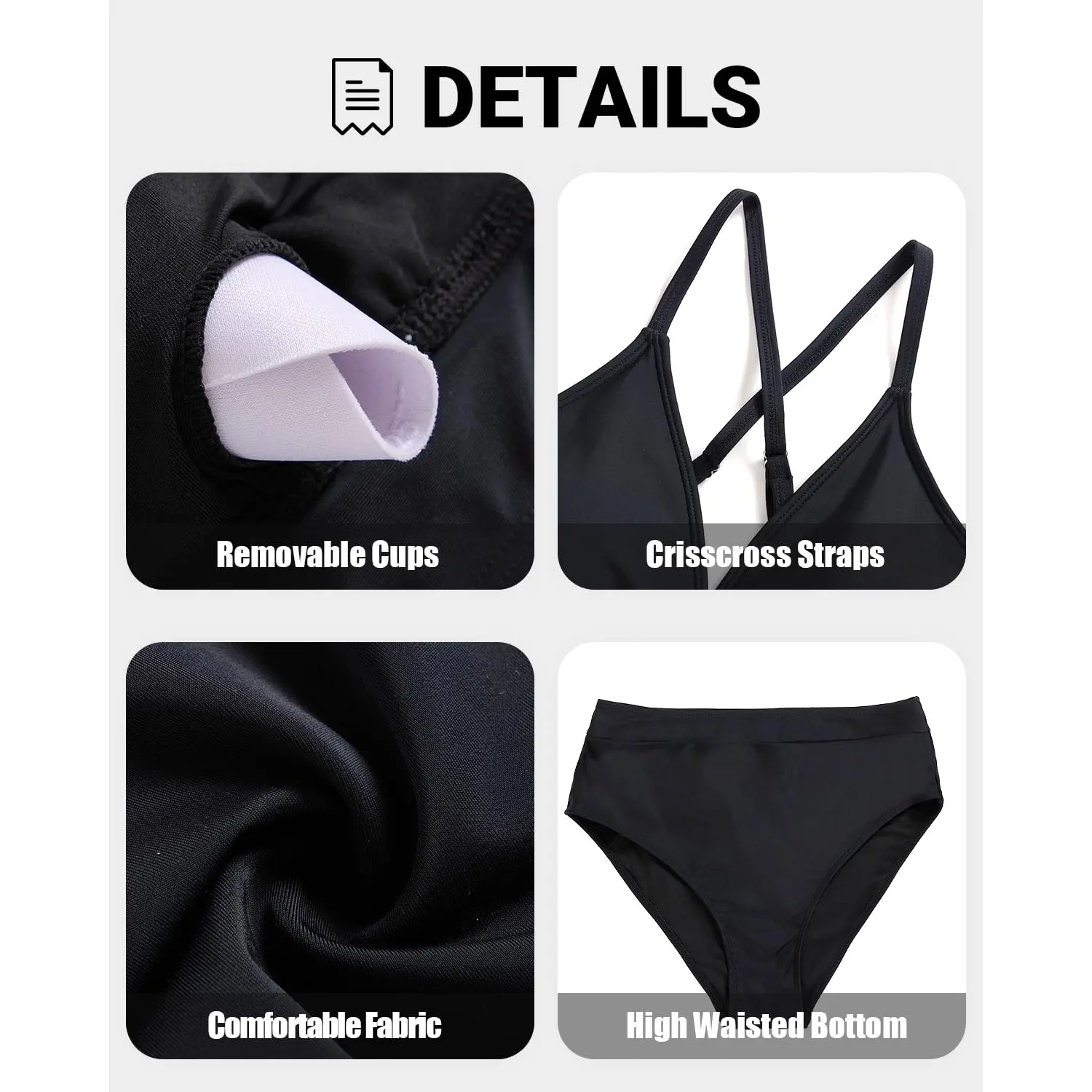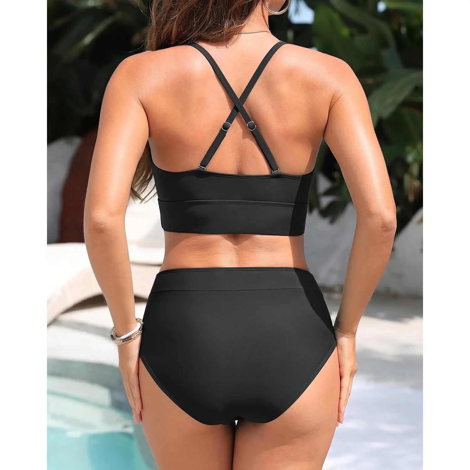 Cross-Back Straps: The back of the top showcases a stylish criss-cross strap design that not only adds visual interest but also provides a secure fit. With adjustable spaghetti straps on the top, this swimsuit can be tailored to your body shape, ensuring a comfortable and personalized fit for all-day wear.
