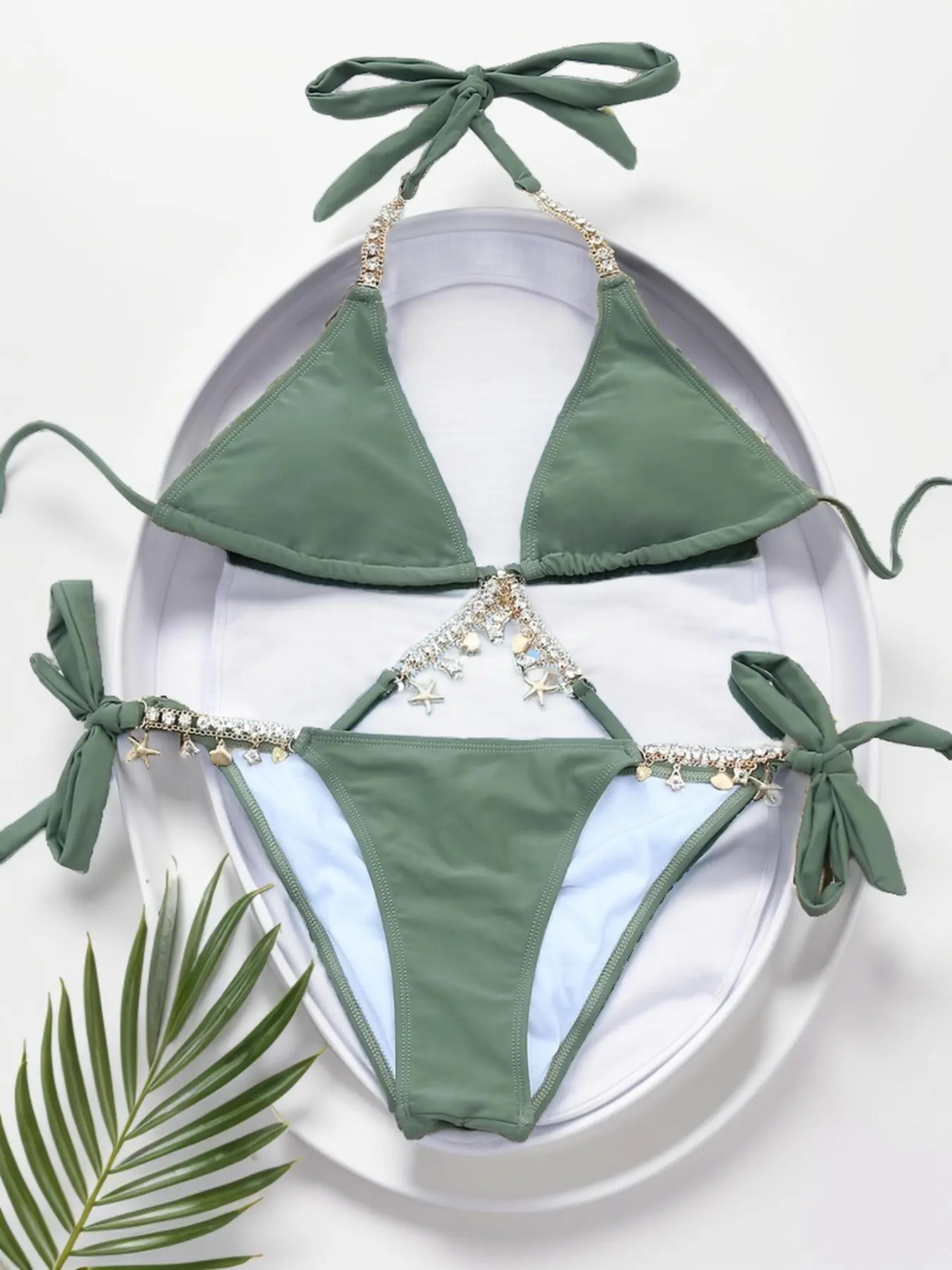 The cutest bikini I own. The color and the gems are so beautiful. Hopefully it holds up 💚🤞