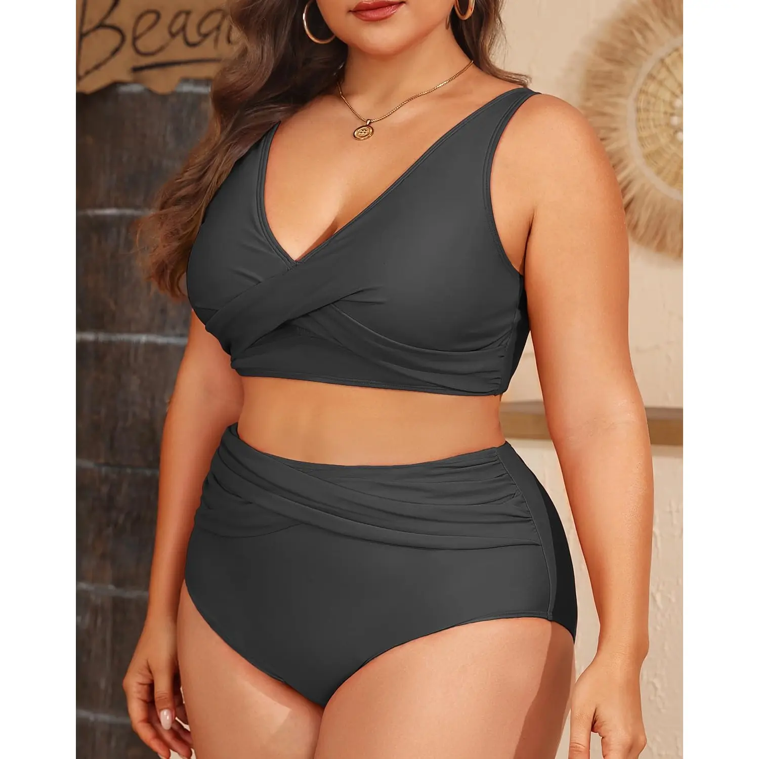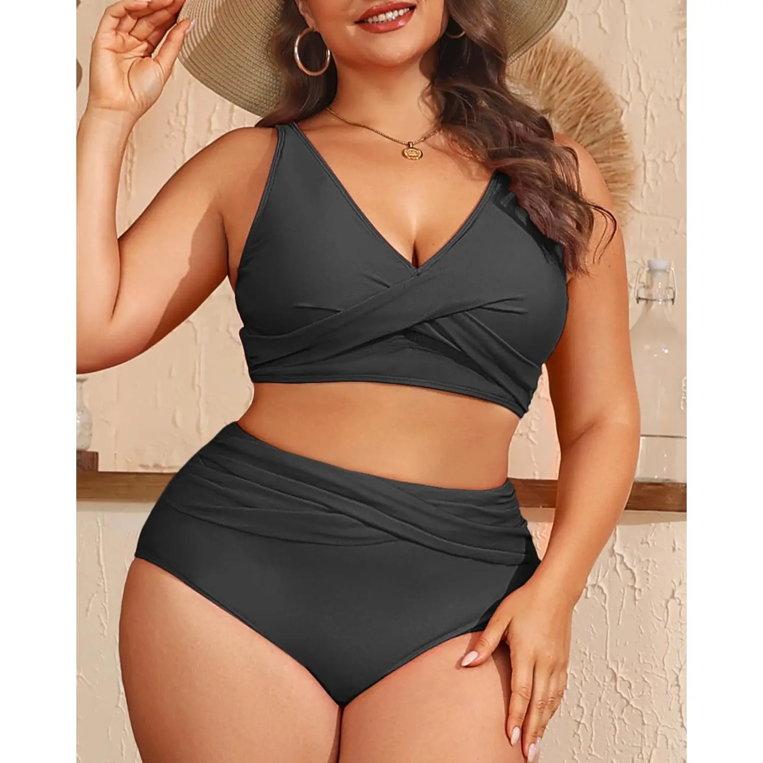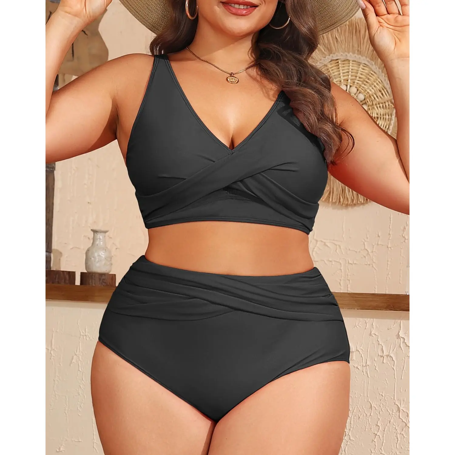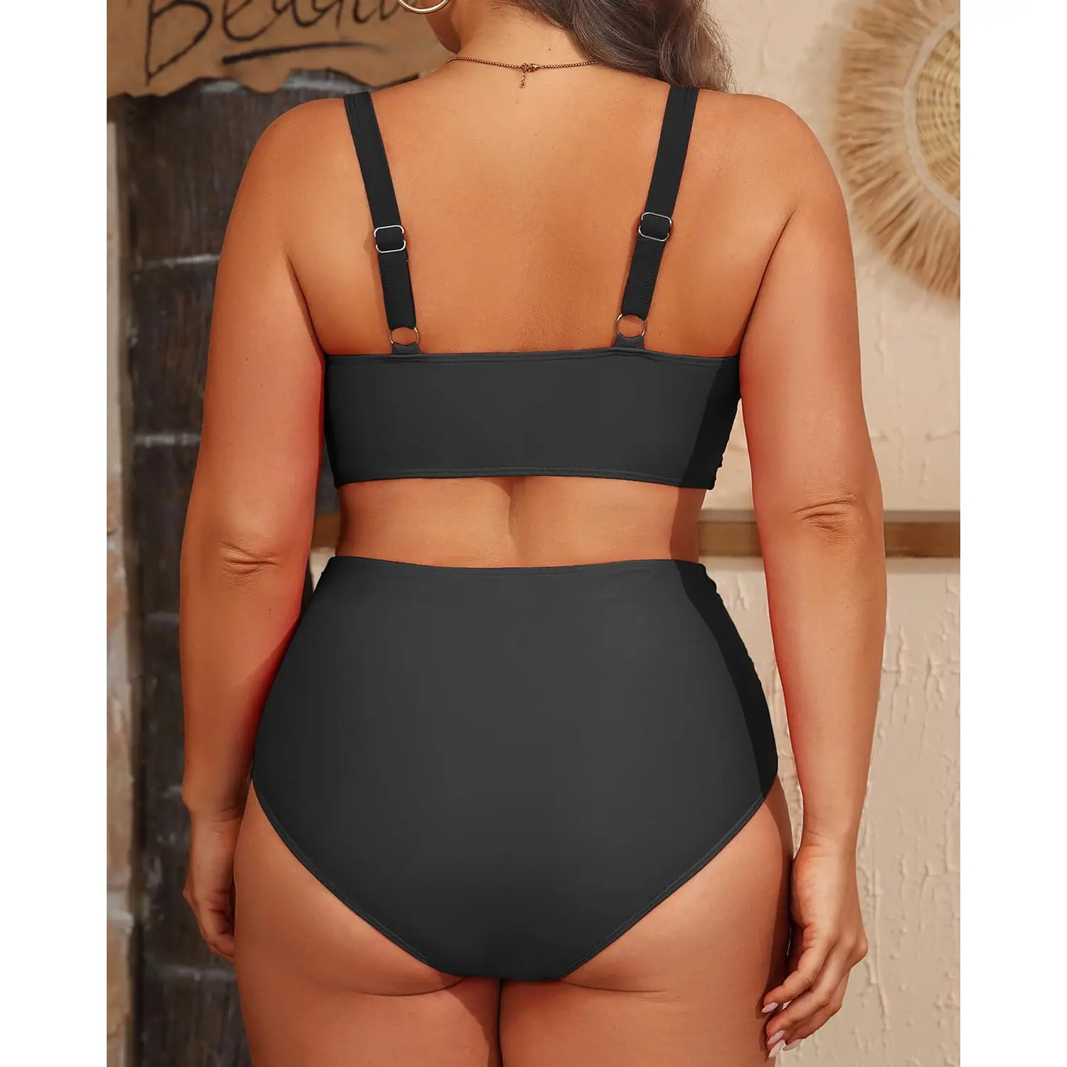 ·Plus Size Bikini Set: This bikini set features a twist front push-up top to enhance your curves and provide excellent support. The ruched high waist bottom offers tummy control to highlight your waist curve.