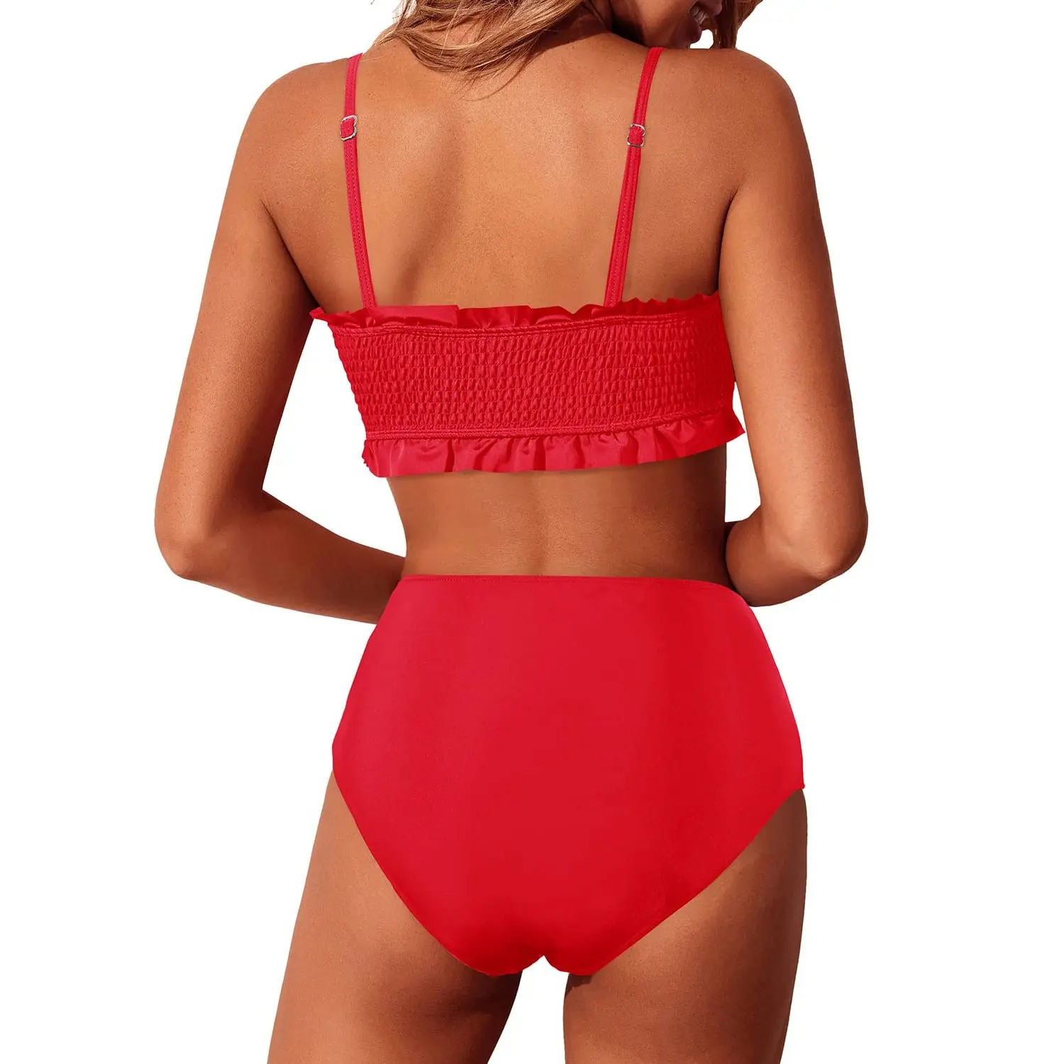 ·Smocked Bikini Top: The bandeau smocked bikini top has ruffled details, removable padded soft cups and shoulder straps, making it look super cute, attractive and stylish. You can wear it with or without shoulder straps.