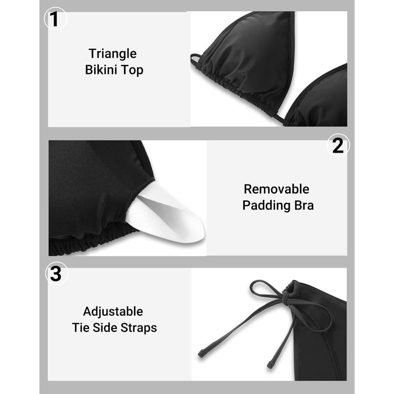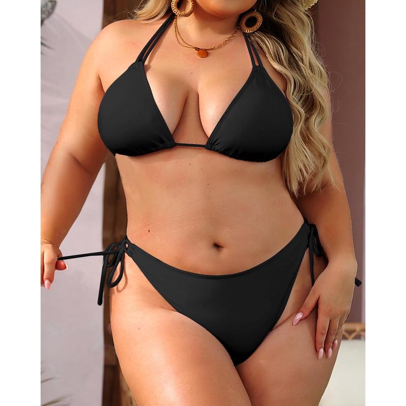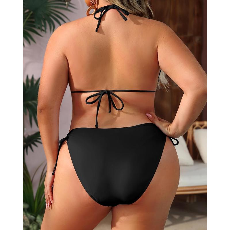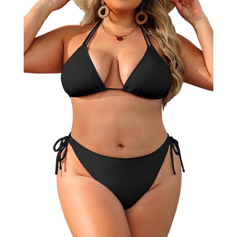 ·Plus Size String Triangle Bikini: The stylish two piece double straps triangle bikini features removable soft padded push-up wireless bra, and the self-tying spaghetti straps make it more fit, flattering and cute.