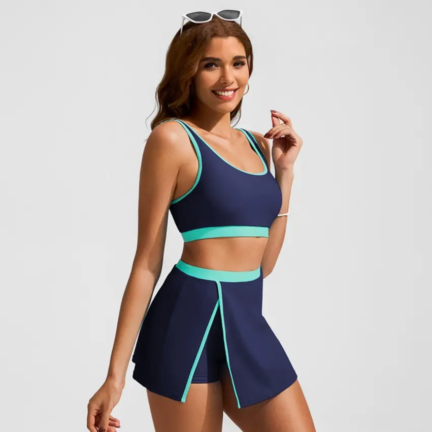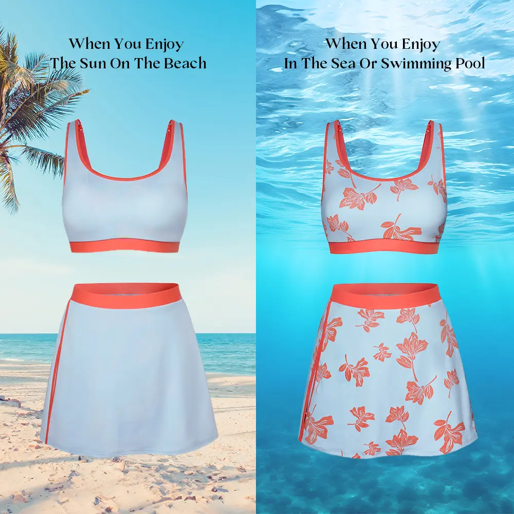 1) Two piece set swimsuit, including a swim tops and a swim skirt