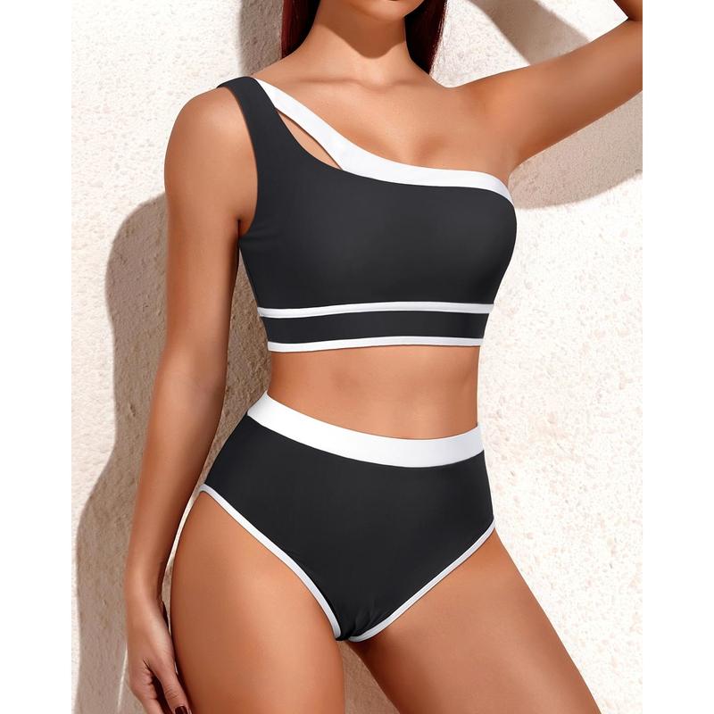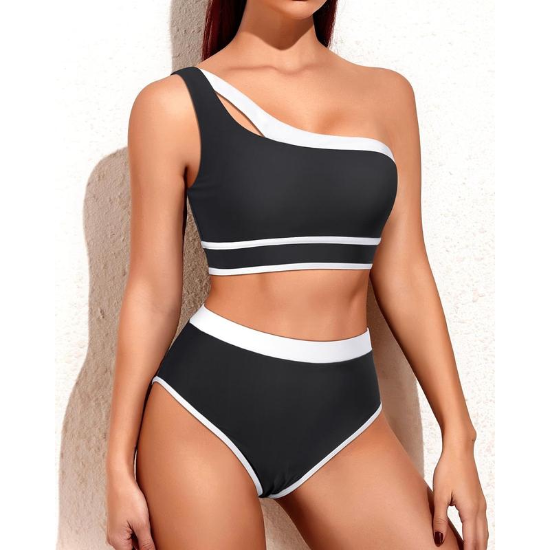 ·One shoulder bikini: This one-shoulder bikini set with high waist bottom shows the beauty of your collarbone and your long torso.