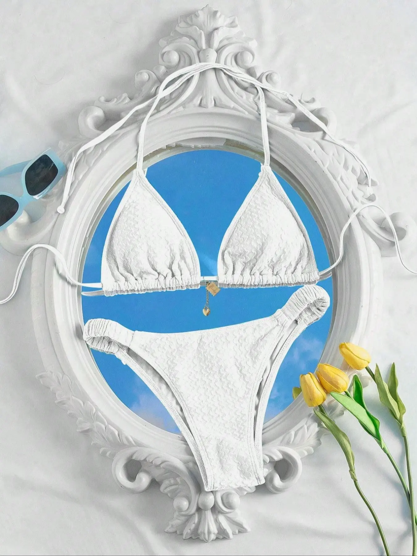 I absolutely love this Two-Piece Set! The textured fabric is soft and comfortable, while the sleeveless halter design is stylish and flattering. Perfect for summer outings—highly recommend for a chic beach look!