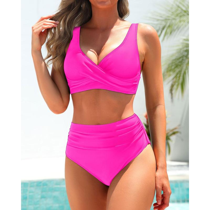 I gave it a 4 instead of a 5 due to the bottoms being so wide on the sides and the waist is really high. But that is how it is pictured. Just too much fabric for my taste. Pretty suit.