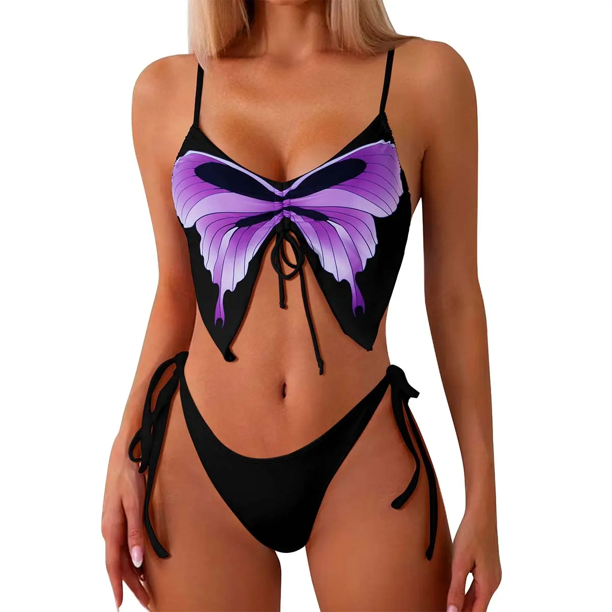 Equipped with adjustable shoulder straps, this bikini offers a comfortable fit for various body types. The V-neck design elongates the neck, making you look slimmer and sexier. The irregular hem mimics butterfly wings, adding personality. 🦋