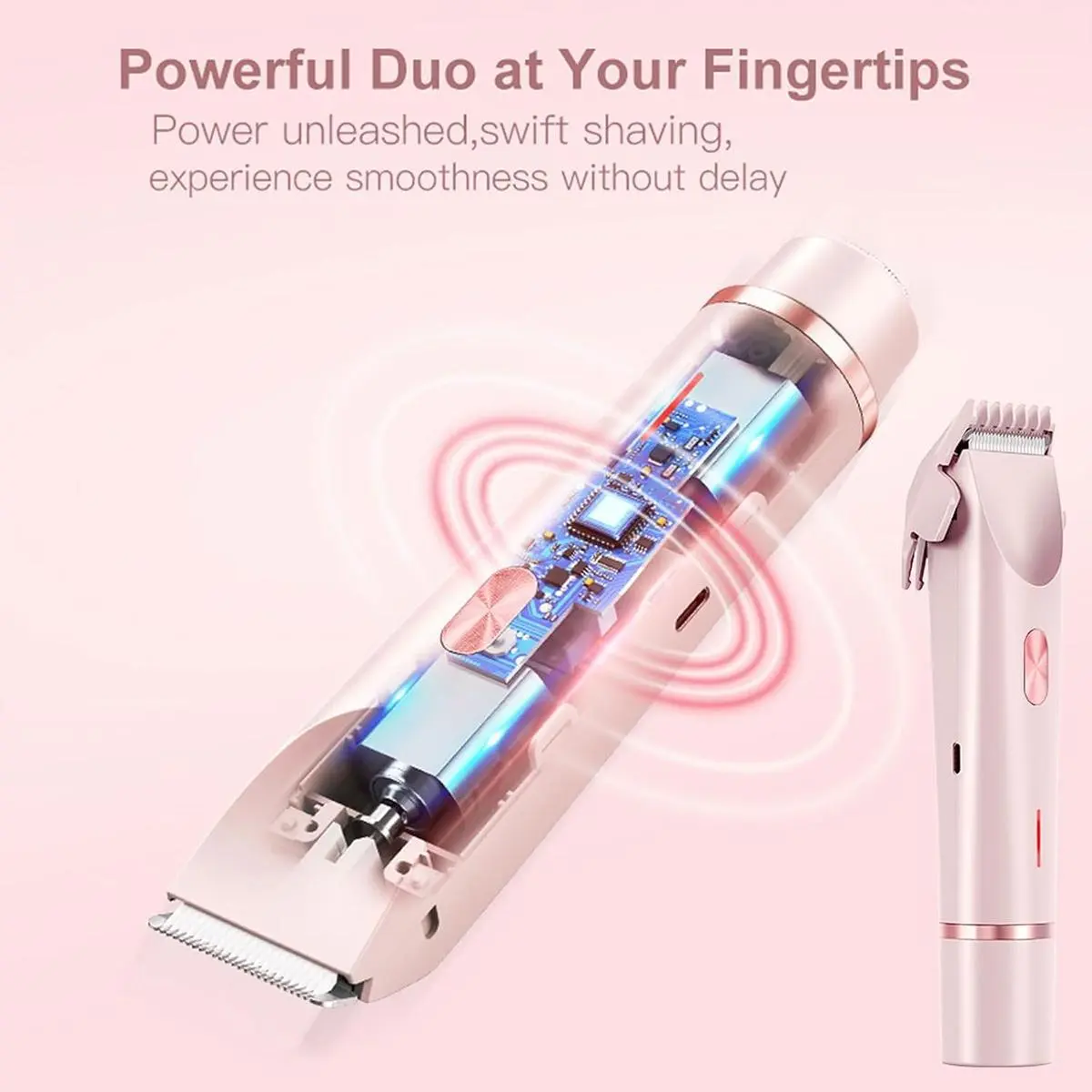 【Dual Head Painless Shaving】: This 2-in-1 electric shaver offers effortless, painless hair removal, delivering a silky, razor-like finish—perfect for women seeking a superior at-home shaving experience.